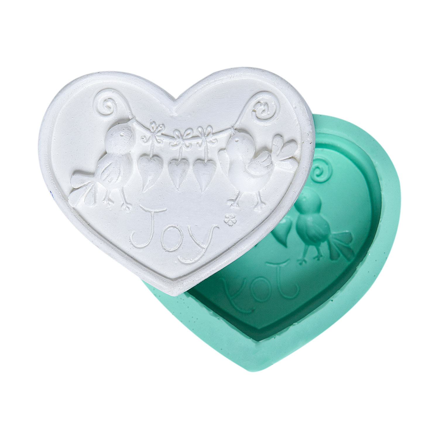 Zarif kuş silueti ve klasik kalp formu, aşkın hem güçlü hem özgür yanını temsil eder. Dekoratif süsleme için özel formüle edilmiş silikon kalıbımız, reçine, alçı ve sabun gibi malzemelerle etkileyici sonuçlar verir.