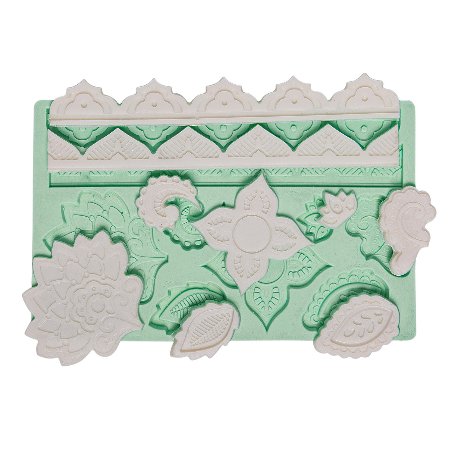 Çeşitli yaprak formları ve düzenli bordür deseni, klasik bahçe stilini modern bir yaklaşımla sunar. Bahçe temalı süs için özel formüle edilmiş silikon kalıbımız, reçine, alçı, hamur ve sabun ile keskin detaylı sonuçlar verir.
