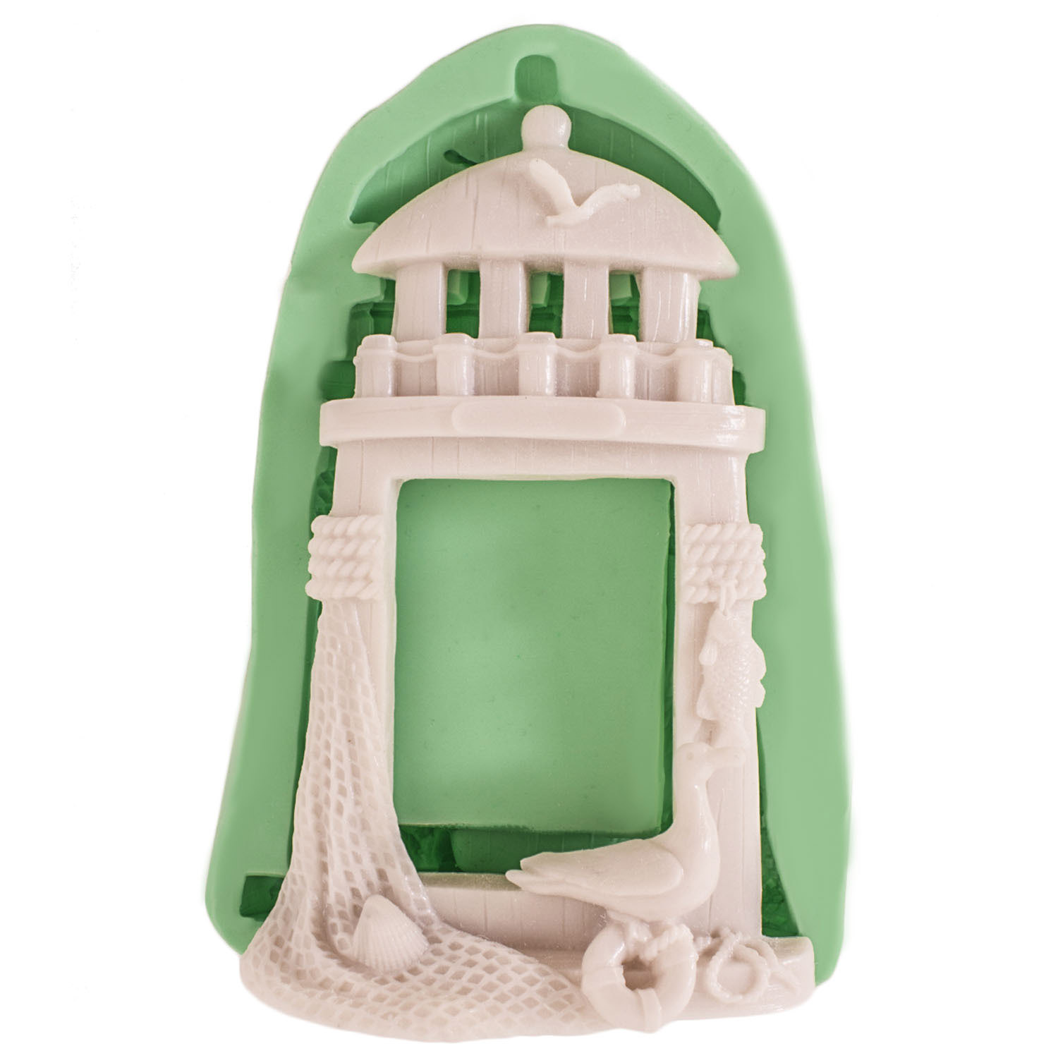 Denizci Kuşlu Deniz Feneri Çerçeve Silikon Kalıp | Sahil Temalı Süs