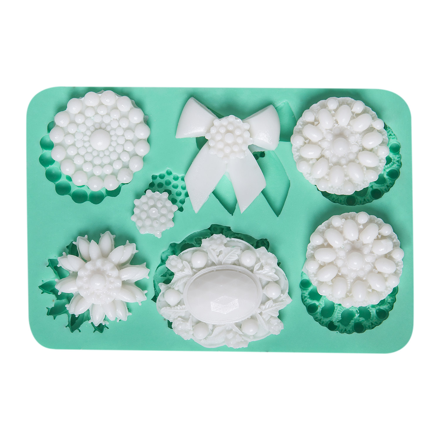 Farklı broş tasarımlarını bir arada sunan kalıbımız, vintage ve modern moda öğelerini küçük objelere dönüştürür. Moda ve aksesuar temalı süsleme için özel formüle edilmiş silikon kalıbımız, reçine, alçı, sabun ve polimer kil ile kusursuz sonuçlar verir.