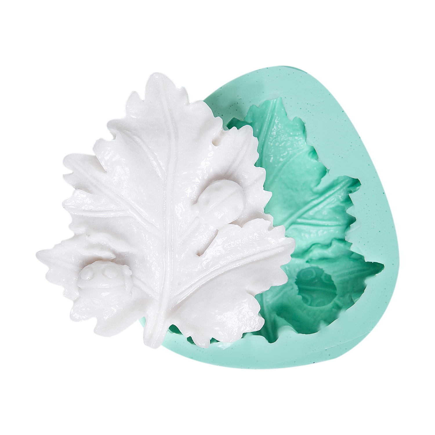 Doğal Uğur Böcekli Yaprak Silikon Kalıp | Bahçe Temalı Süs Yapımı