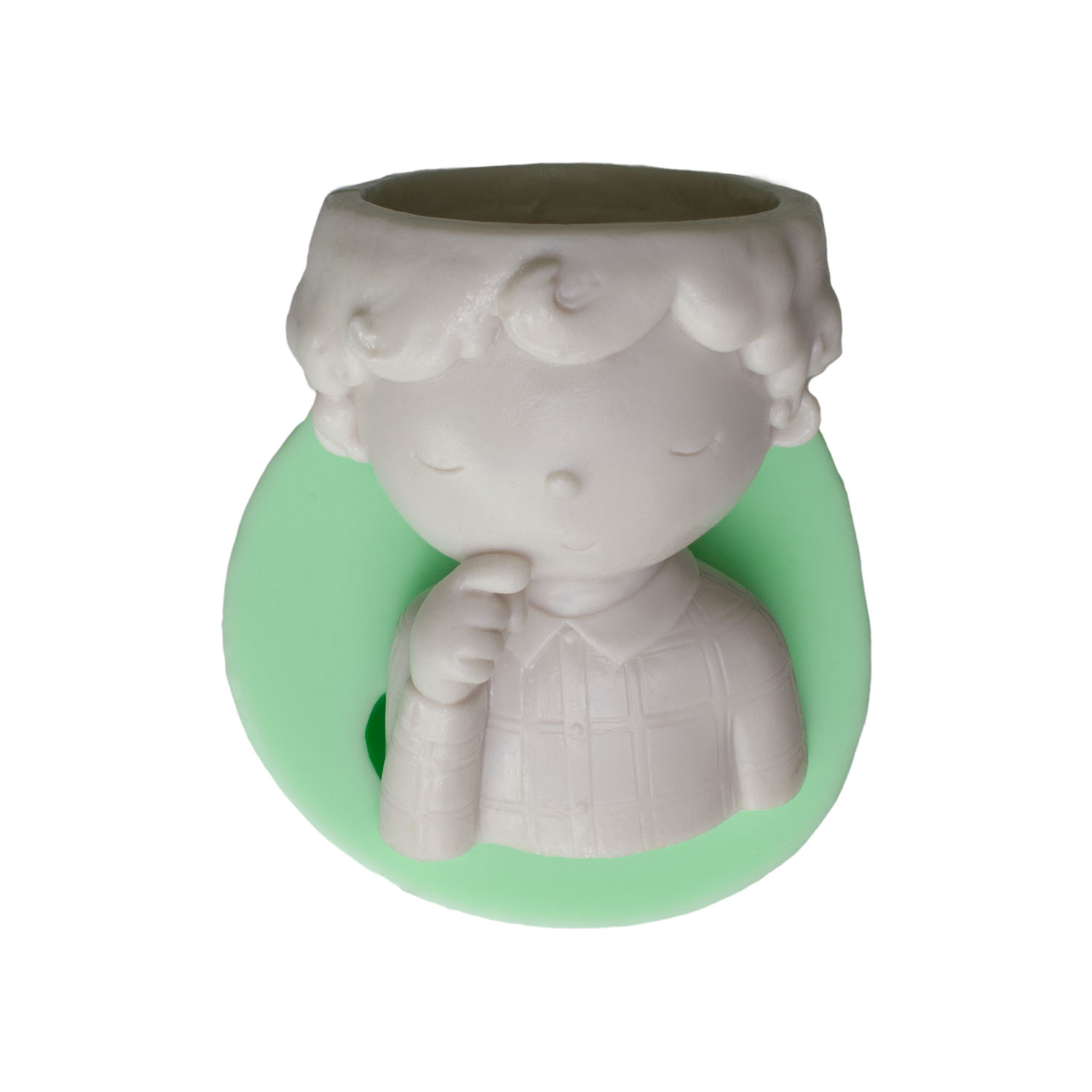 Minik sukulent ve çiçekler için dekoratif saksı, ofis dekorasyonu, kitaplık süslemesi ve düşünsel hediyeler için mükemmel bir seçimdir. Doğal ten ve saç tonlarıyla renklendirilerek gerçekçi bir görünüm elde edilebilir. Diğer erkek figürlü saksı kalıplarımızla birleştirerek çeşitli karakterlerde bir koleksiyon yaratabilirsiniz.
