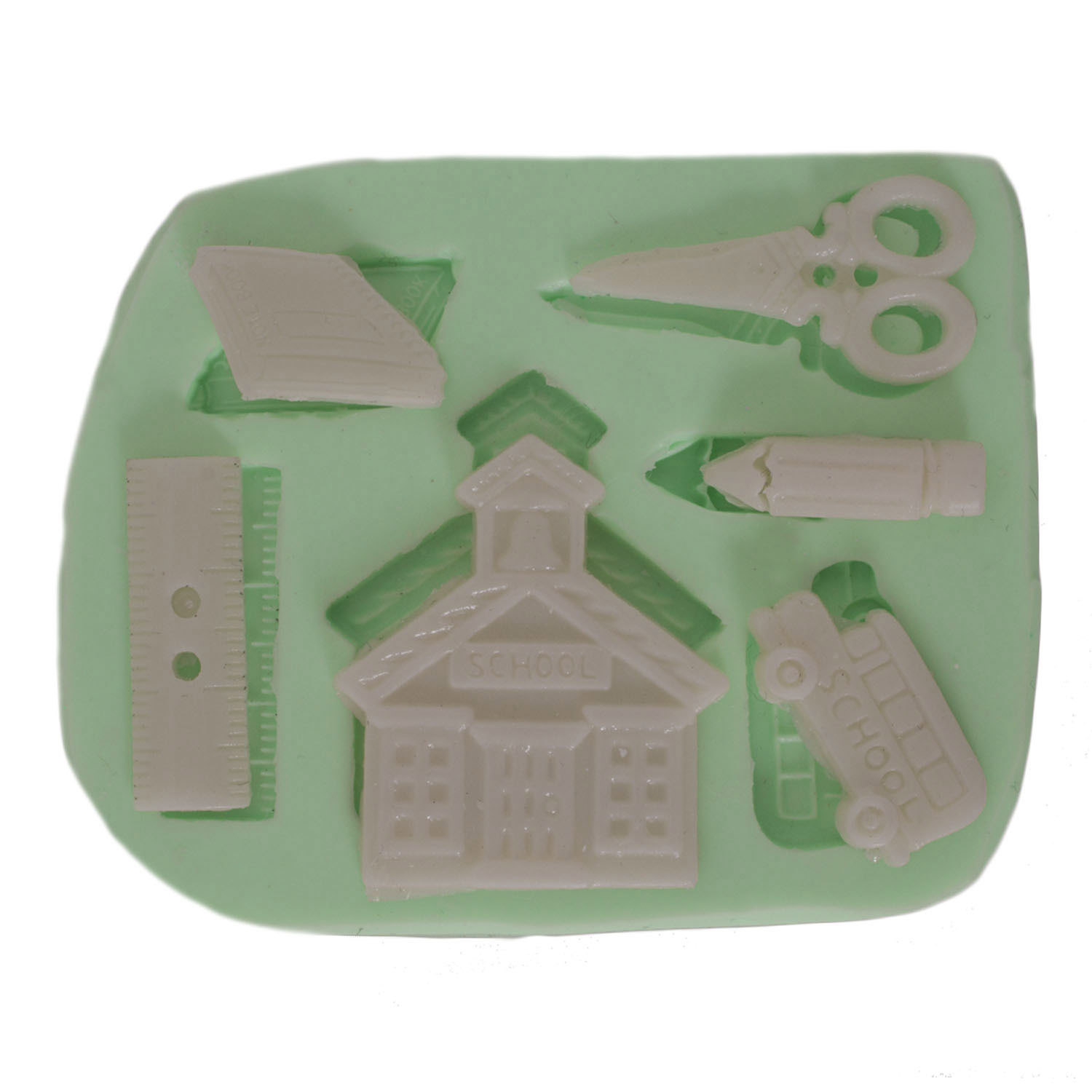 Kalem, defter, silgi, pergel gibi okul gereçleri, gerçekçi oranlarda minyatürleştirilmiştir. Özel formüllü silikondan üretilen kalıbımız, reçine, alçı, polimer kil ve renkli sabun ile kusursuz sonuçlar verir.