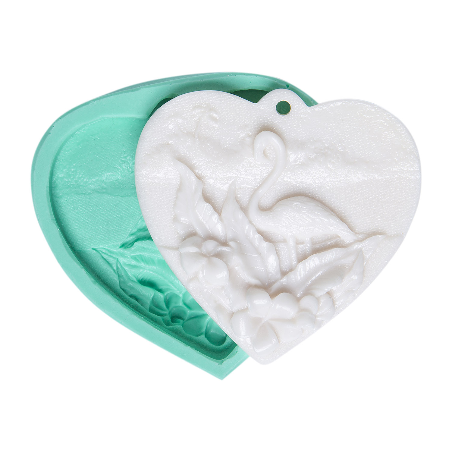 Zarif flamingo silueti ve dekoratif kalp deliği, modern ve trend bir tasarım sunar. Tropikal dekorasyon için özel formüle edilmiş silikon kalıbımız, reçine, alçı, sabun ve kokulu taş ile göz alıcı sonuçlar verir.