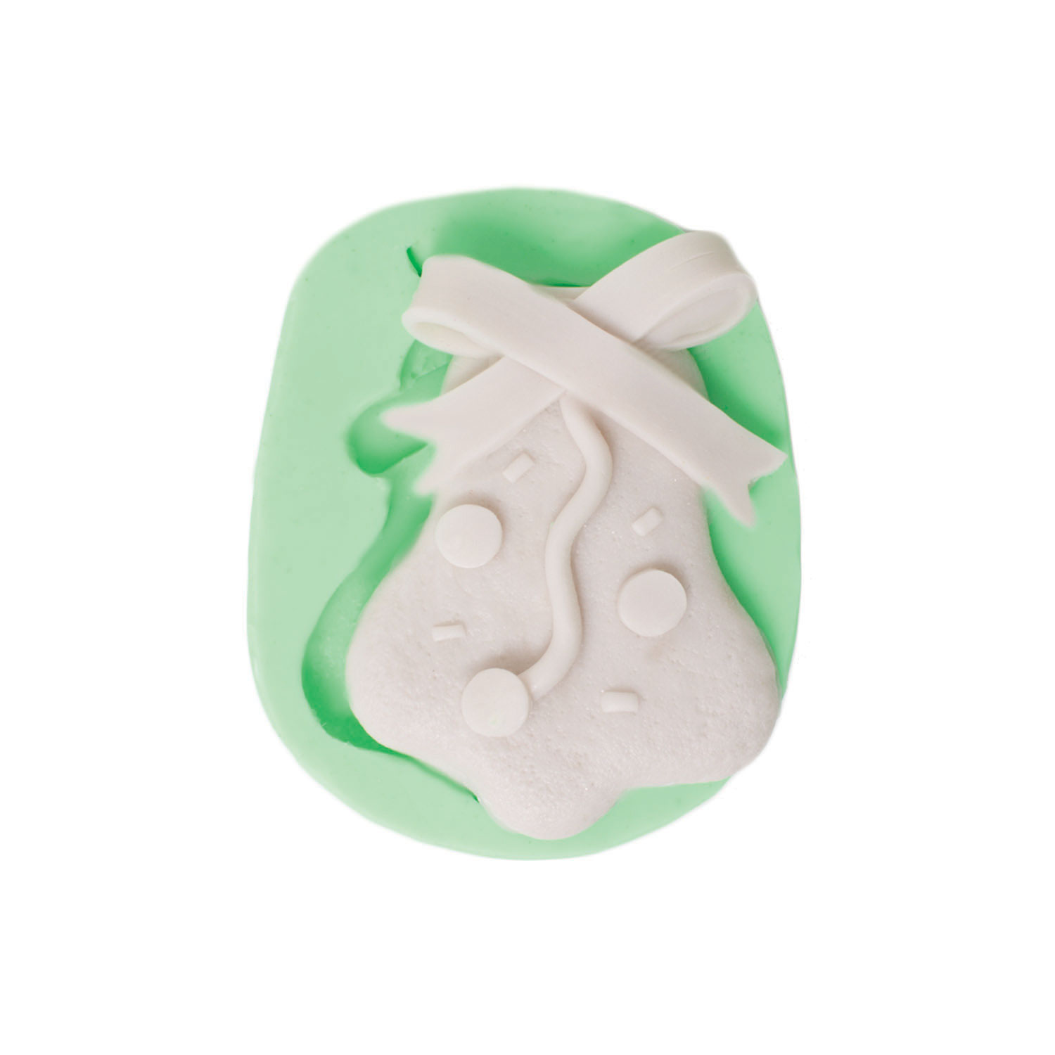 Kutlamaların melodisini simgeleyen 6x8x1,5cm boyutlarındaki fiyonklu süslü yılbaşı çanı kalıbımız, dekoratif projelerinize zarafet katar.