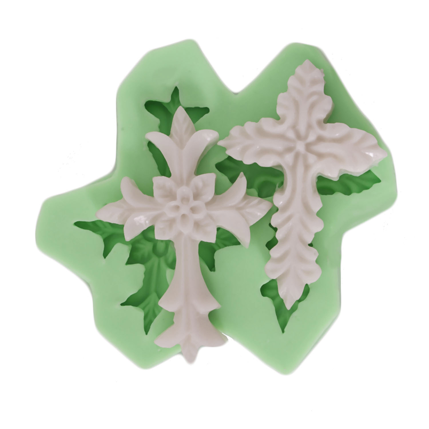 Farklı ölçülerdeki haç formları ve İslami süslemeler, kullanım amacınıza göre seçim yapma imkanı sağlar. Dini süs yapımı için özel tasarlanan silikon kalıbımız, reçine, alçı, sabun ve kokulu taş ile her iki boyutta da kusursuz sonuçlar verir.