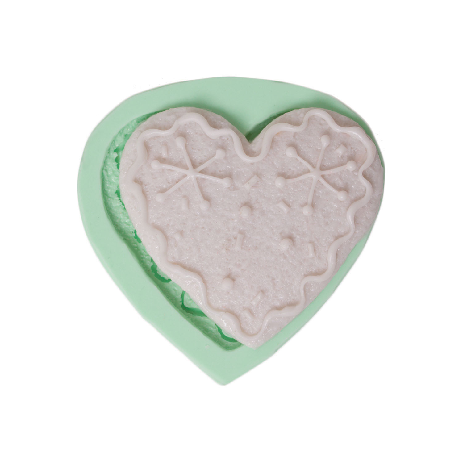 Kurdelya Kış Temalı Kar Taneli Büyük Kalp Silikon Kalıp Modeli (Kar Temalı Dekorasyon İçin – 7,5x7x1cm – KK-1914)