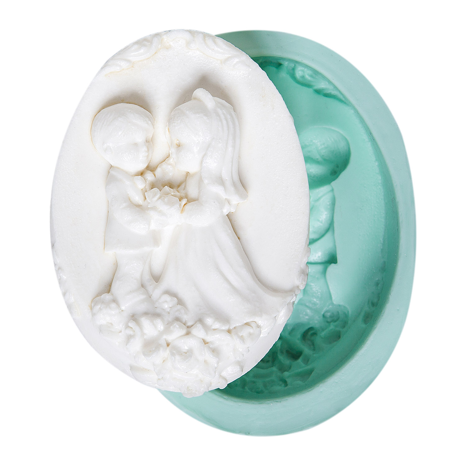 Evlilik mutluluğunu simgeleyen 5,5×7,5×2,5cm boyutlarındaki klasik gelin damat kalıbımız, düğün temalı projelerinize zarafet katar.