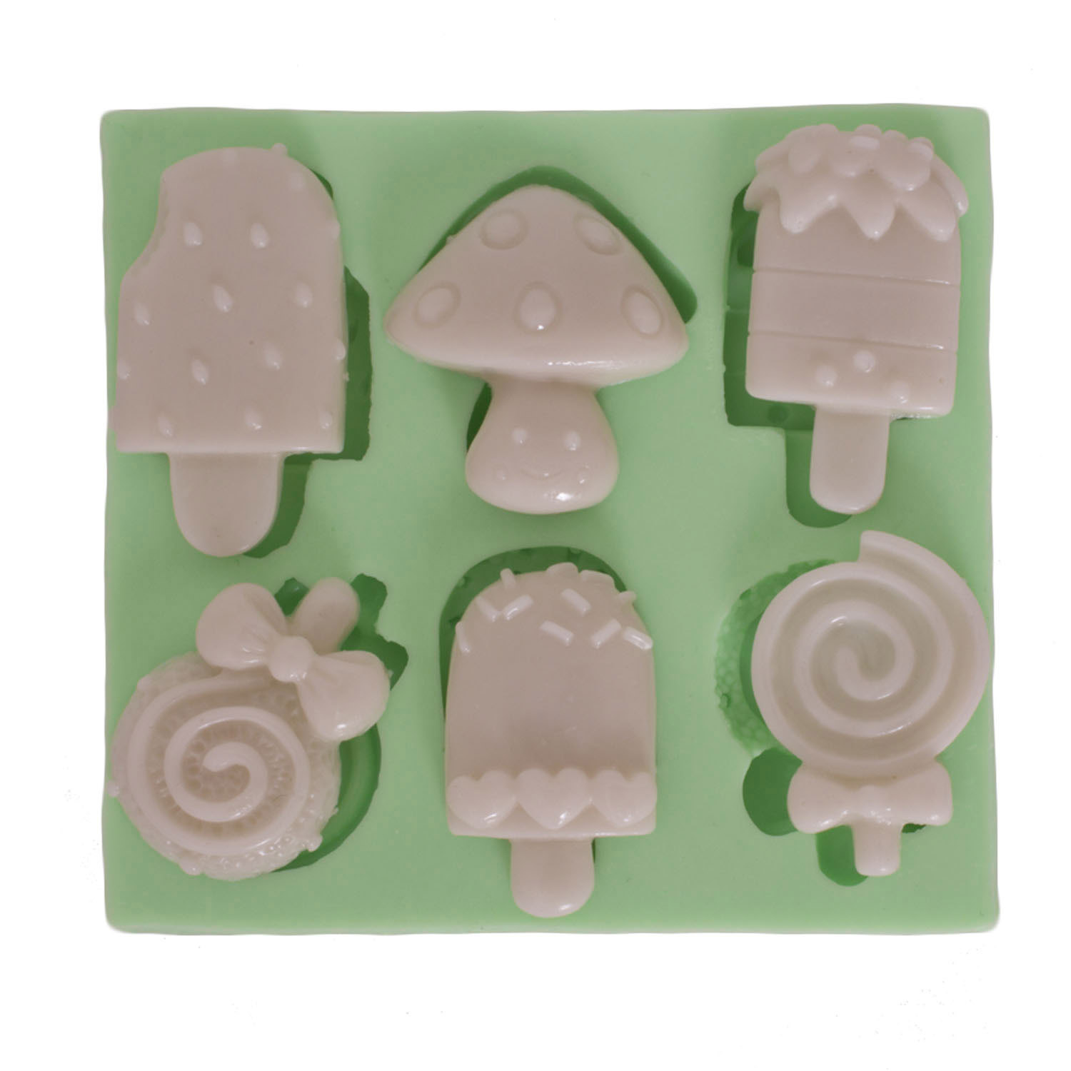 Külah, çubuk ve kase dondurma formları, yaz tatlılarının en sevilen versiyonlarını bir araya getirir. Yaz temalı dekorasyon için özel formüle edilmiş silikon kalıbımız, reçine, alçı, sabun ve gerçek yiyecek yapımında güvenle kullanılabilir.
