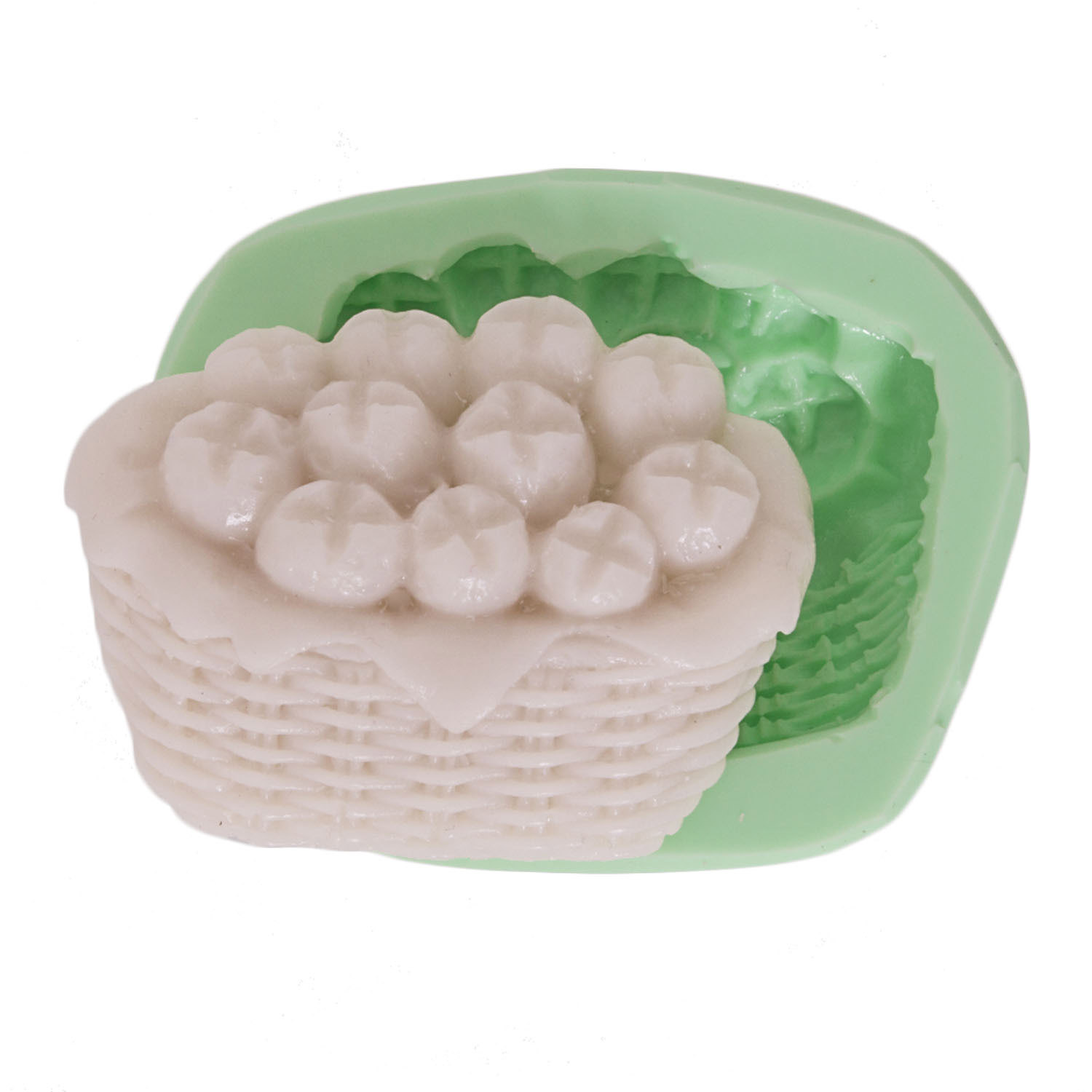 Hasır sepet dokusu ve içindeki detaylı kurabiyeler, ev yapımı atıştırmalıkların davetkar görünümünü simgeler. Mutfak temalı süs için özel tasarlanan silikon kalıbımız, reçine, alçı, sabun ve kokulu taş ile keskin detaylar sunar.