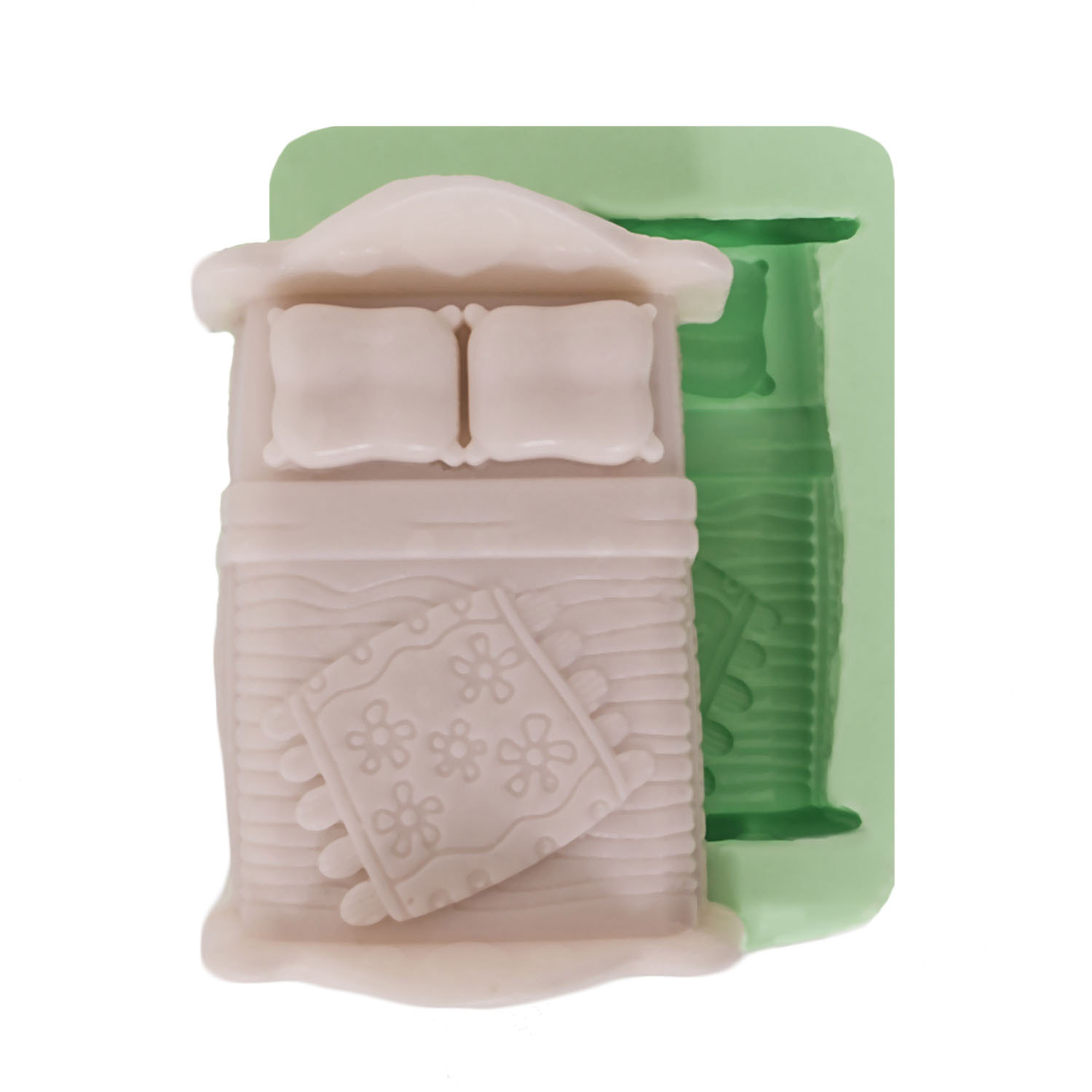 Kurdelya Minyatür Üzeri Battaniyeli Yatak Silikon Kalıp Modeli (Bebek Evi Mobilyası İçin – 6x8x3cm – KK-1587)