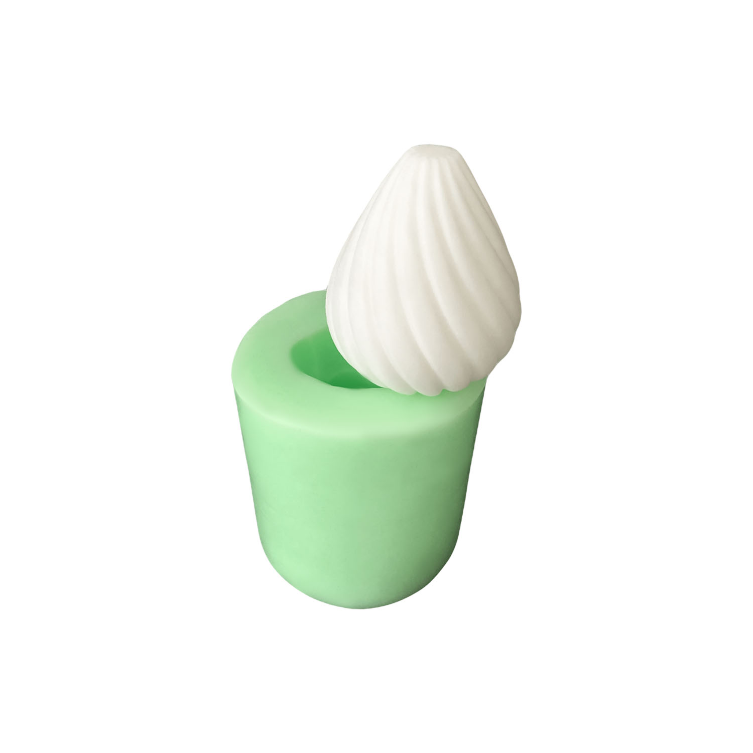 Akışkan estetiği yansıtan 6,5×6,5×7,5cm boyutlarındaki sarmal silindir mum kalıbımız, modern projelerinize dinamizm katar.