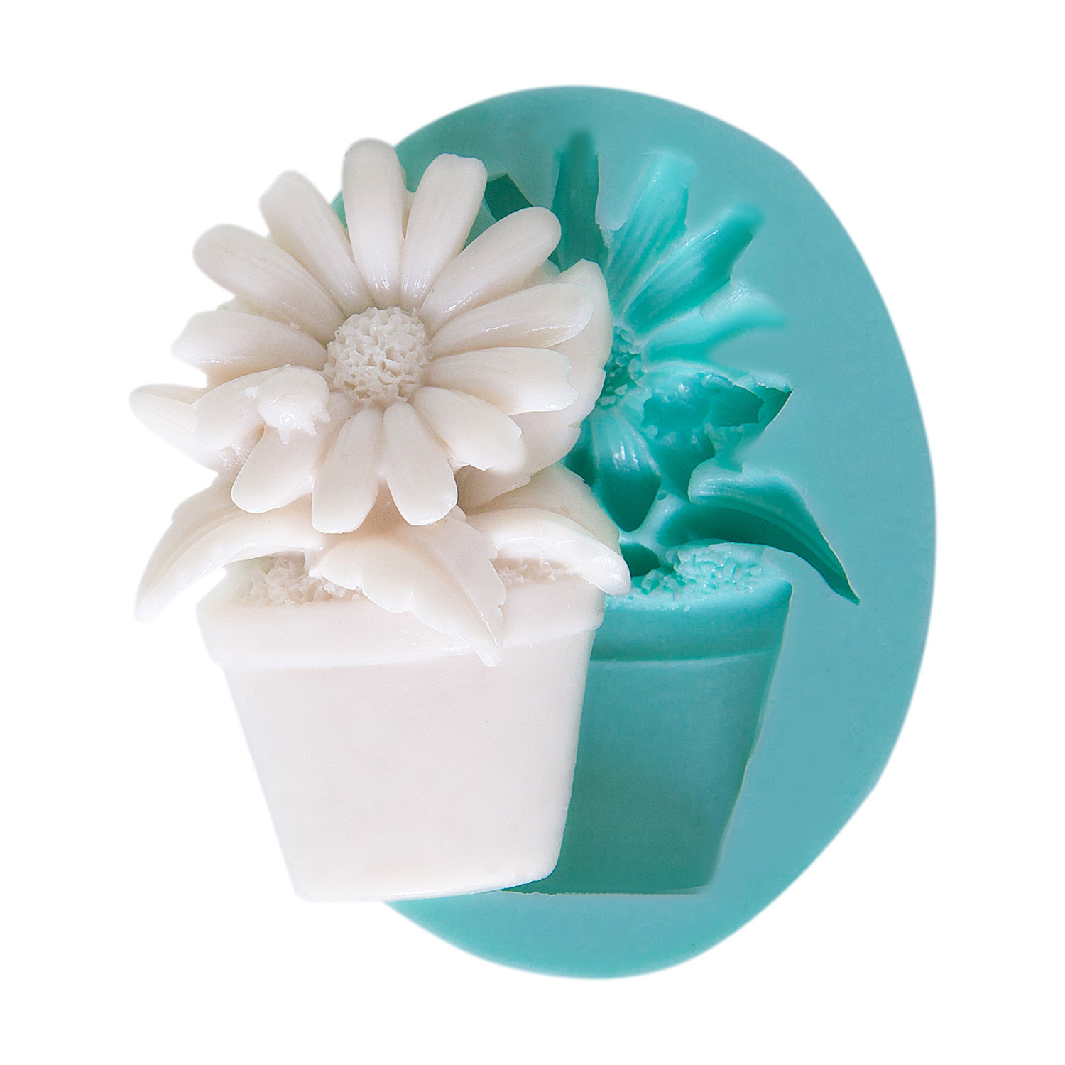 Naturel Saksıda Uğur Böcekli Papatya Silikon Kalıp | Bahçe Temalı Süs