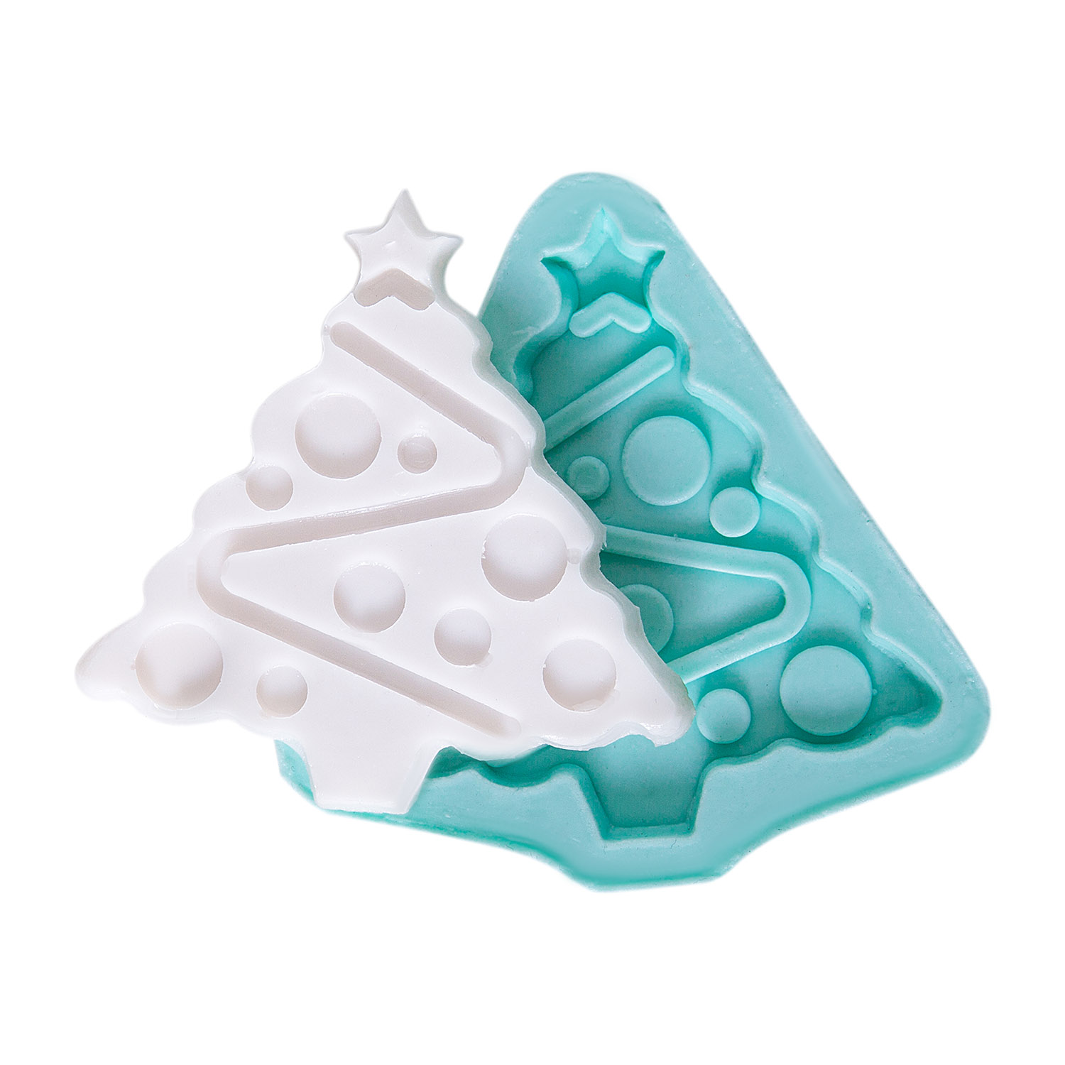 Kurdelya Noktalı Yılbaşı Ağacı Silikon Kalıp Modeli (Yeni Yıl Süsü İçin – 6,5×6,5×0,5cm – KK-1042)