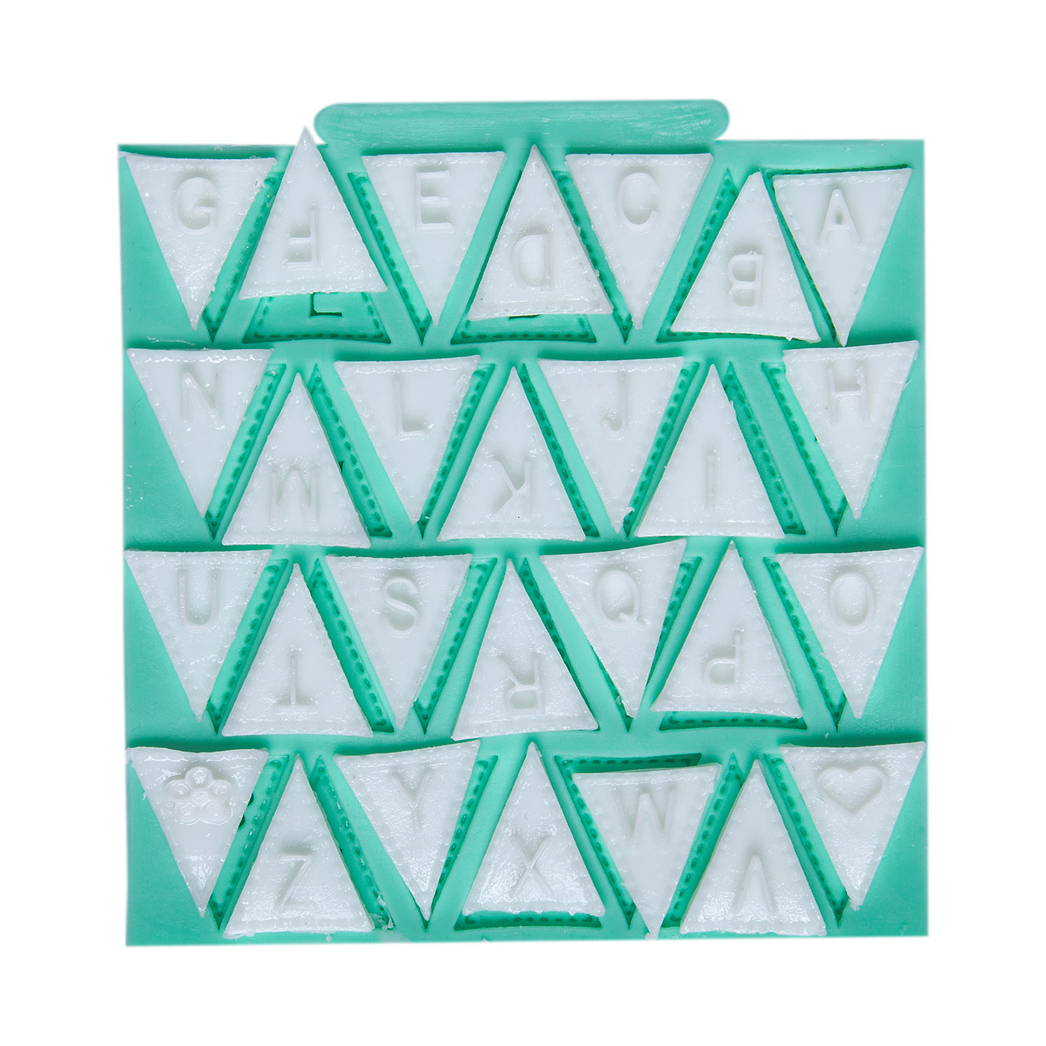 Bayrak formundaki küçük harfler, retro bir görünüm sağlayarak geçmiş zamanların yazı karakterlerini canlandırır. Vintage stil süsleme için özel tasarlanan silikon kalıbımız, reçine, alçı, sabun ve hamur işlerinde kusursuz sonuçlar verir.
