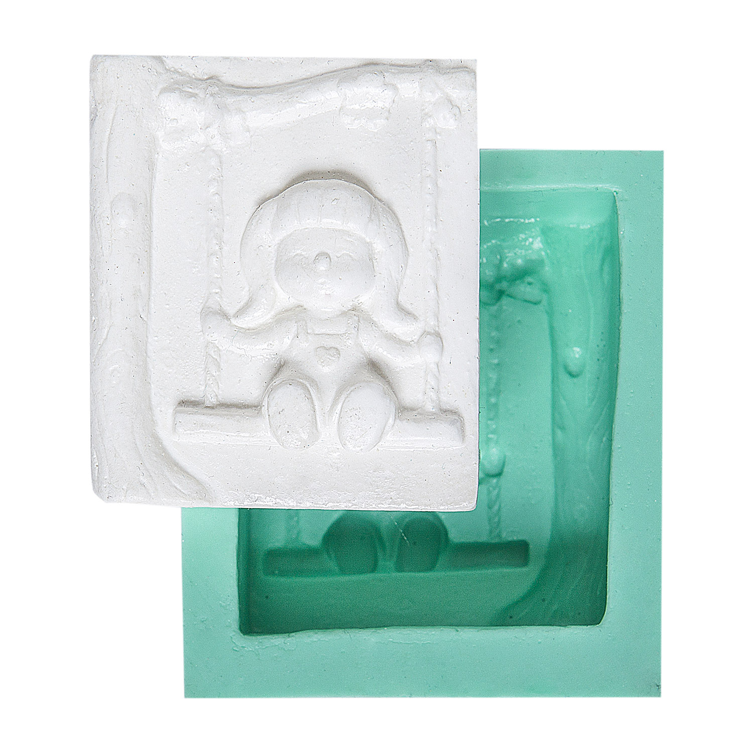 Detaylı salıncak ipleri ve neşeyle sallanan kız figürü, masumiyetin ve eğlencenin mükemmel yansımasıdır. Vintage çocuk teması için özel tasarlanan silikon kalıbımız, reçine, alçı ve sabun ile kusursuz sonuçlar verir.
