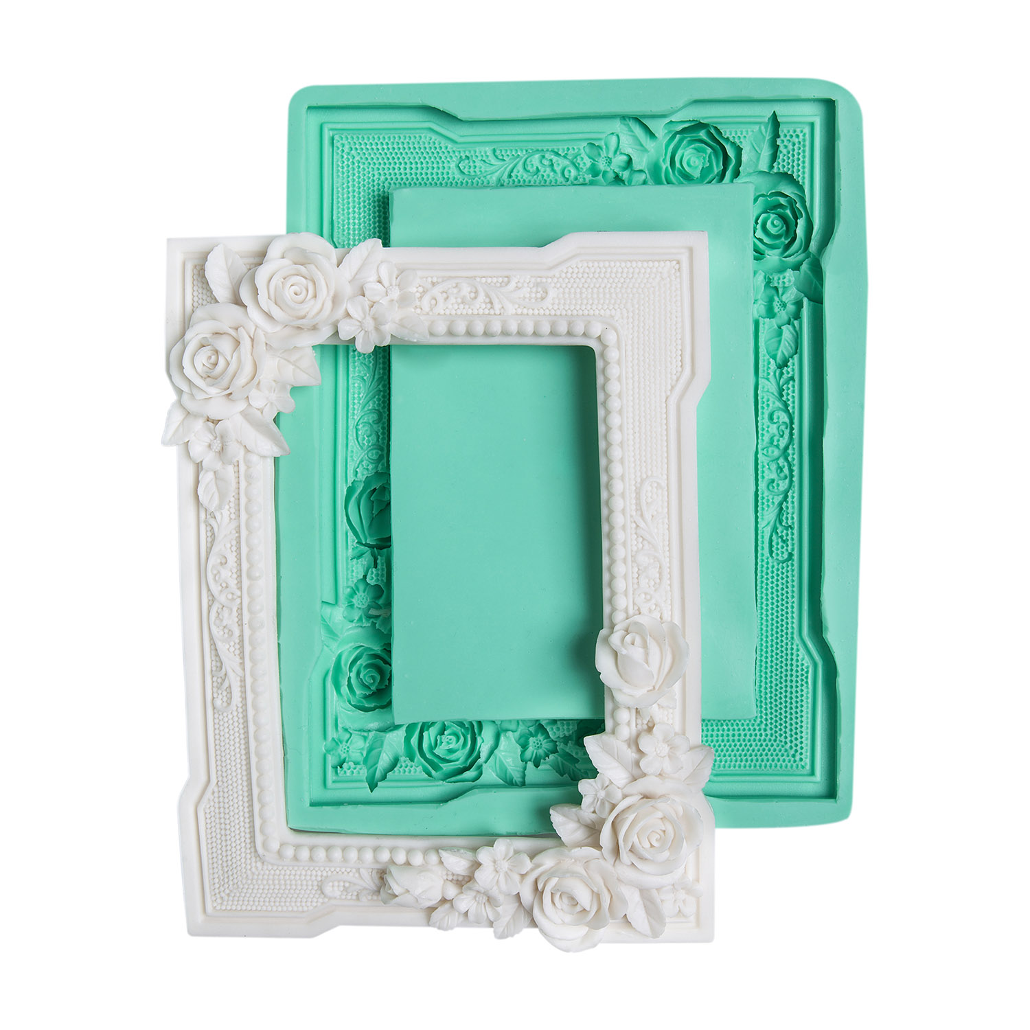 Romantik Çiçekli Güllü Çerçeve Silikon Kalıp | Çiçek Dekorasyonu