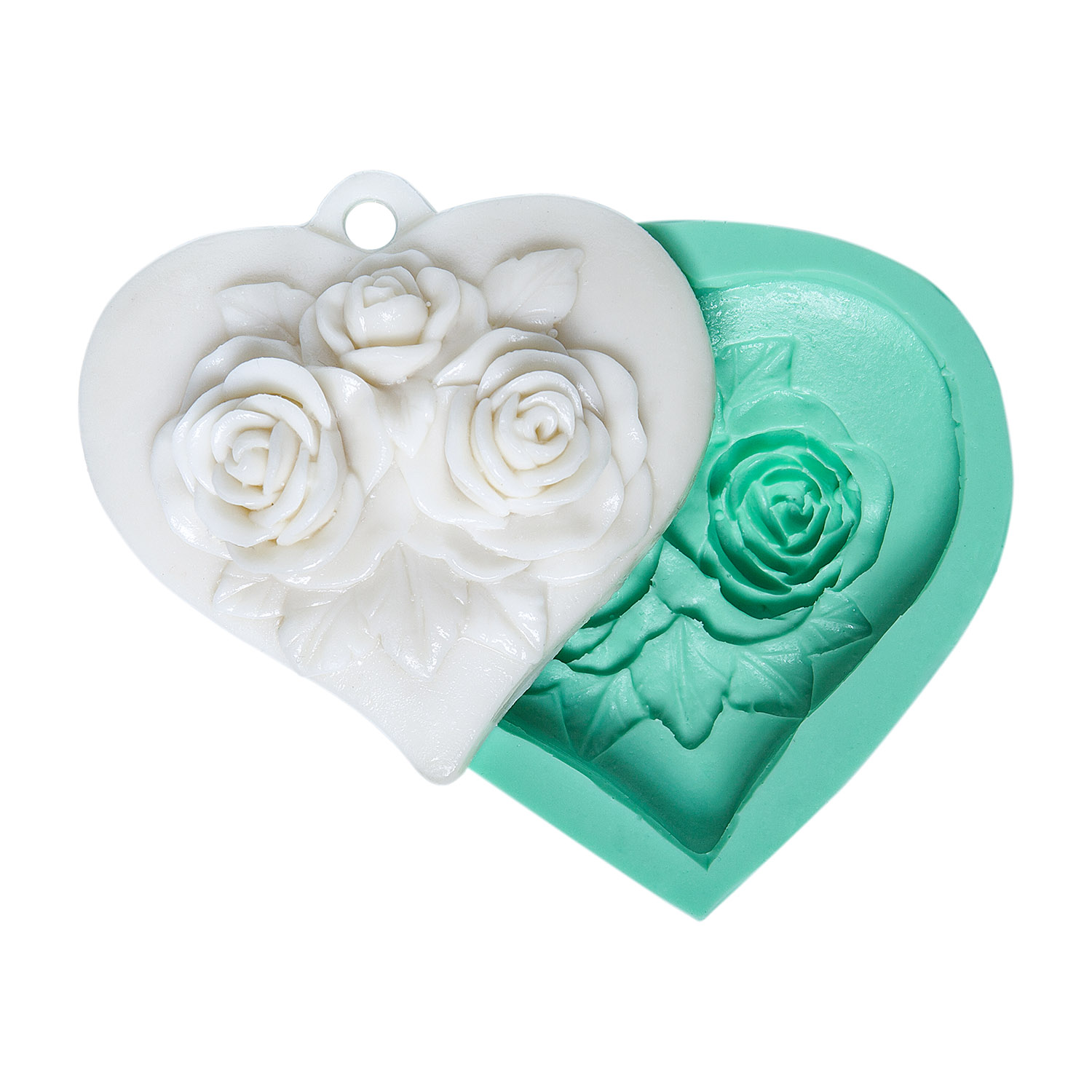Romantik Güllü Kalp Delikli Silikon Kalıp | Aşk Sembolü Dekorasyon