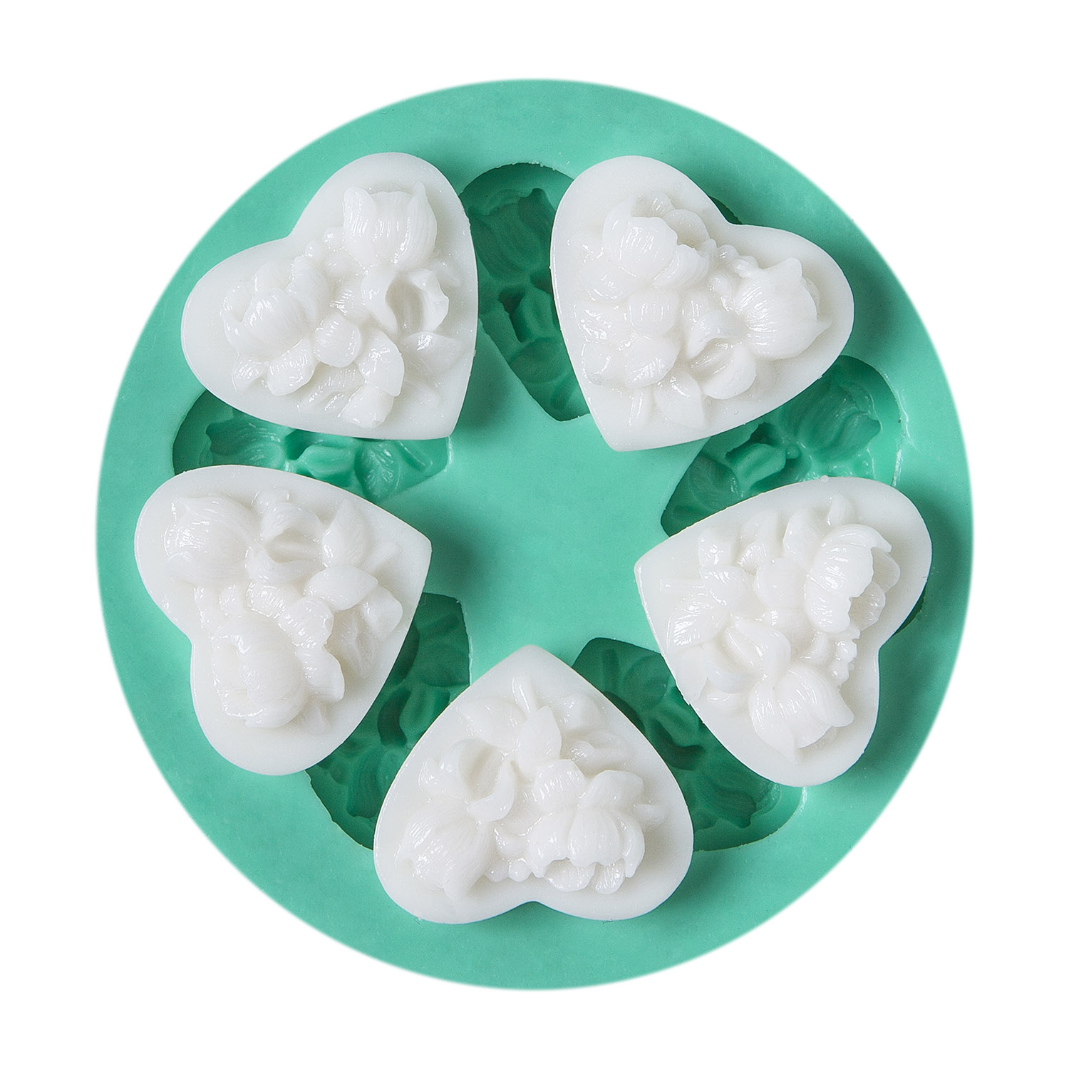 Güllü minik kalp desenleri, zarif bir şekilde romantizmi vurgular. Tek kalıpta beş farklı kalp deseni sunan silikon kalıbımız, reçine, alçı, sabun, ve fondant ile mükemmel sonuçlar verir.