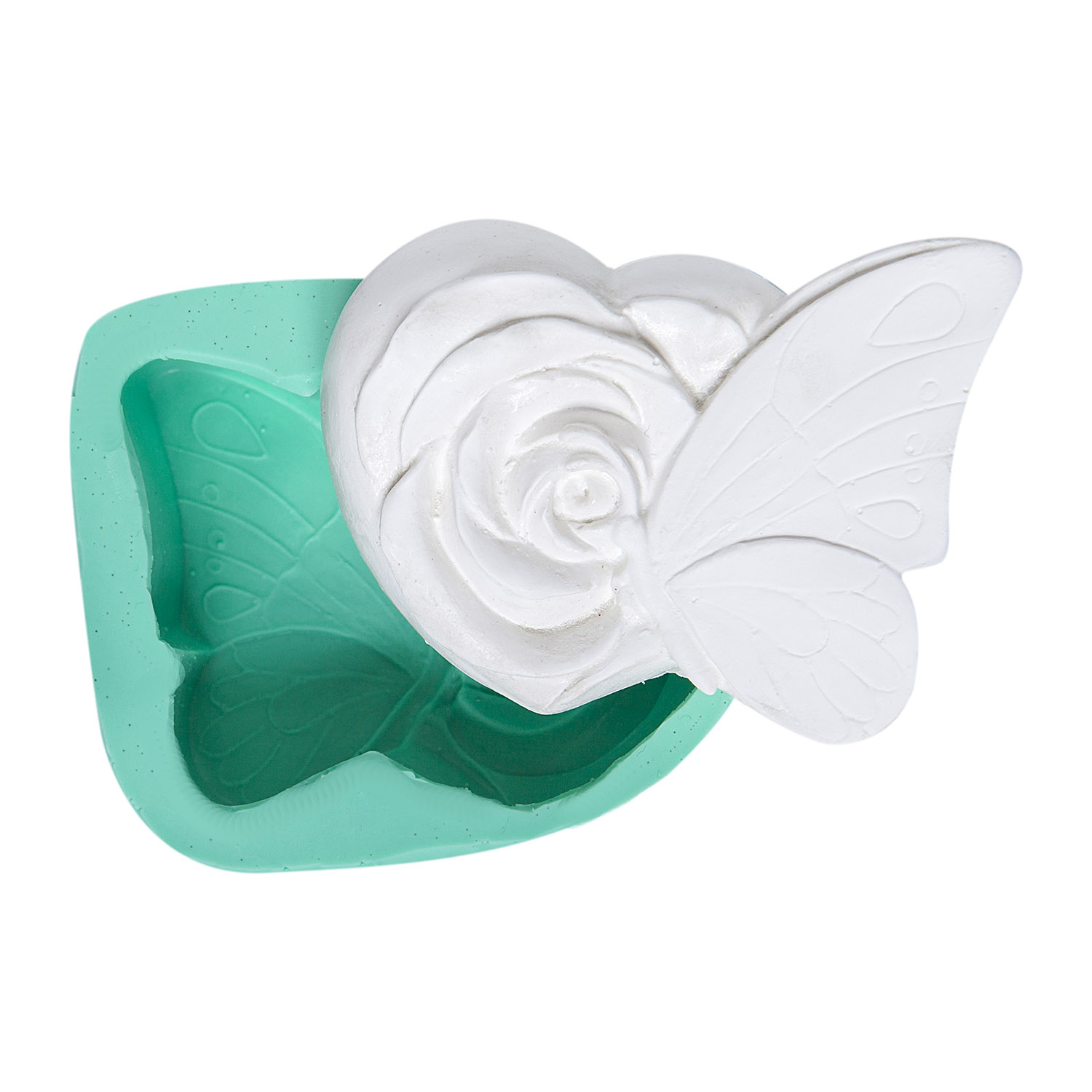 Kalp Üzerinde Kelebek Desenli Silikon Kalıp | Aşk Temalı Süsleme
