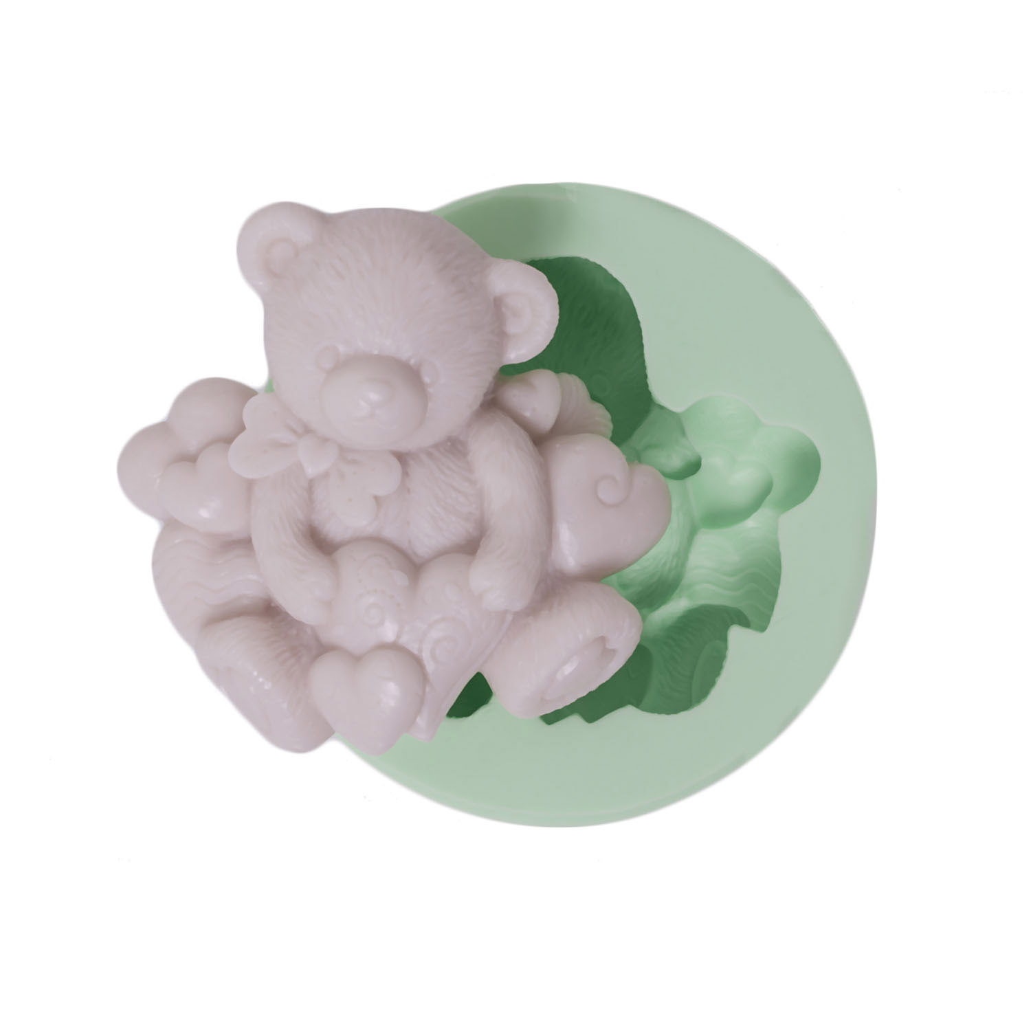 Kalp formları arasında sevimli ayıcık figürü, masum aşkı sembolize eder. Sevgililer Günü süsü için özel formüle edilmiş silikon kalıbımız, reçine, alçı, sabun ve ile kusursuz sonuçlar verir.