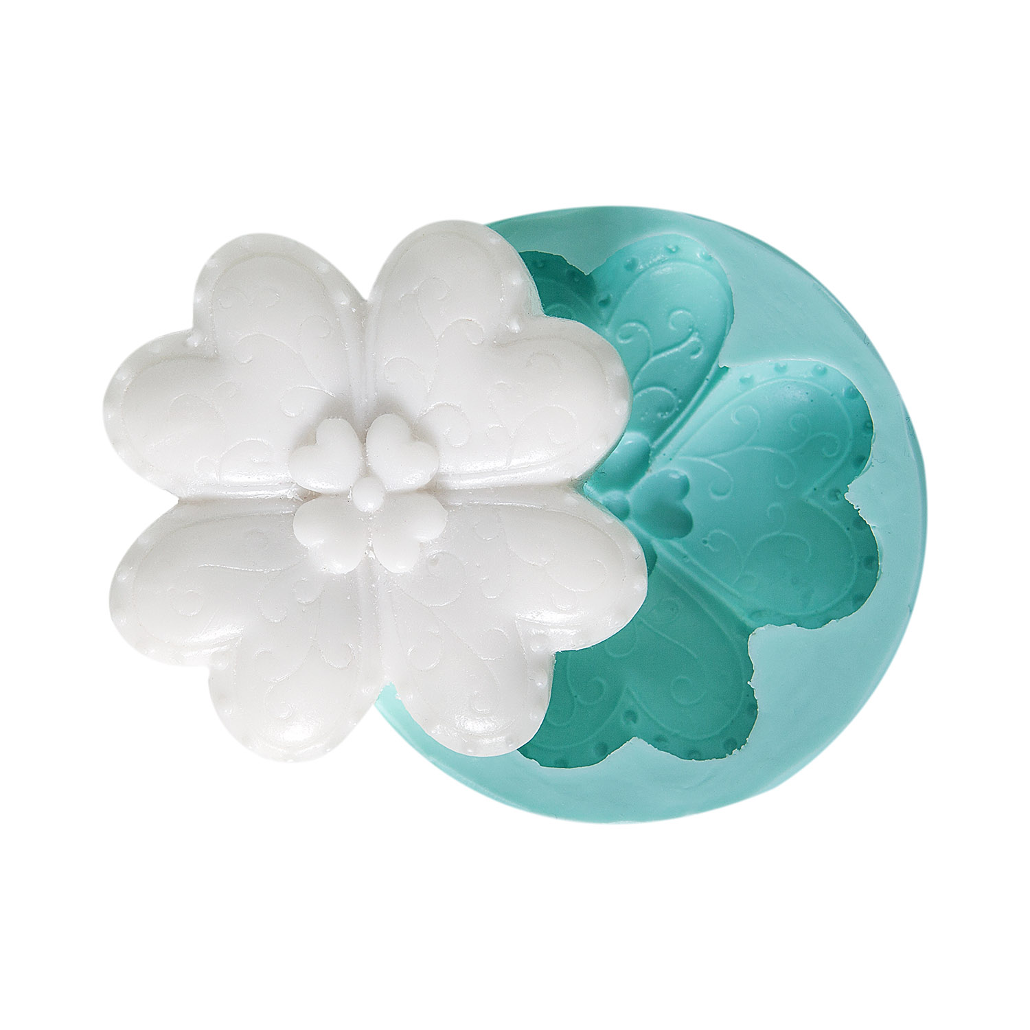 Aşkı ve doğayı buluşturan 6,5×6,5x2cm boyutlarındaki romantik kalpli çiçek desenli kalıbımız, sevgi dolu projelerinize zarafet katar.