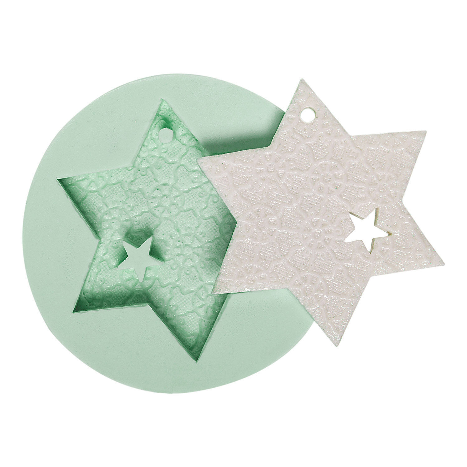 Kurdelya Romantik Yıldız Detaylı Dantel İşlemeli Delikli Silikon Döküm Kalıbı (Yıldız Temalı Dekorasyon İçin – 8x8x0,5cm – KK-1339)
