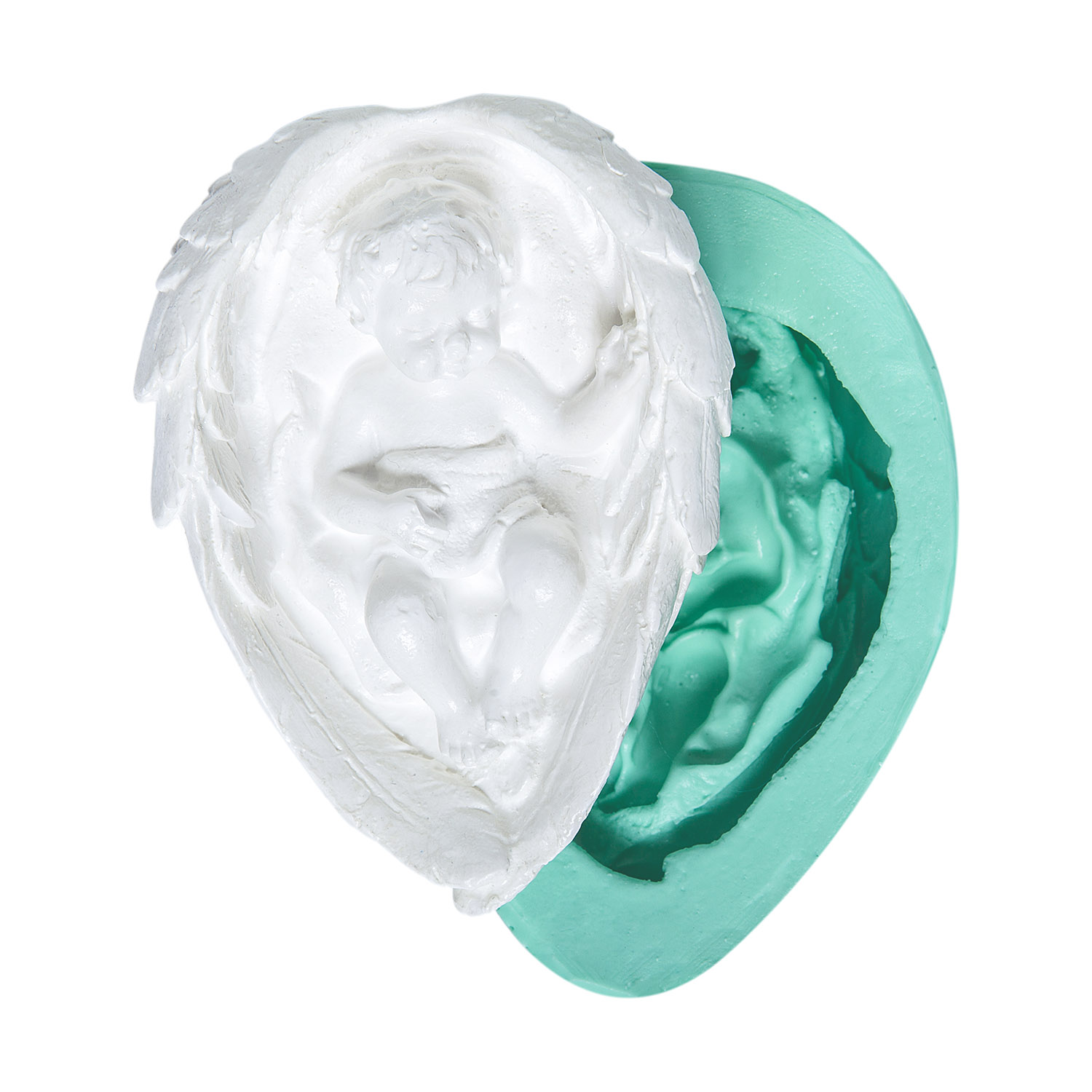 Kurdelya Şefkatli Melek Kanadında Bebek Silikon Kalıp Modeli (Melek Bebek Konsepti İçin – 7,5x10x3,5cm – KK-0080)