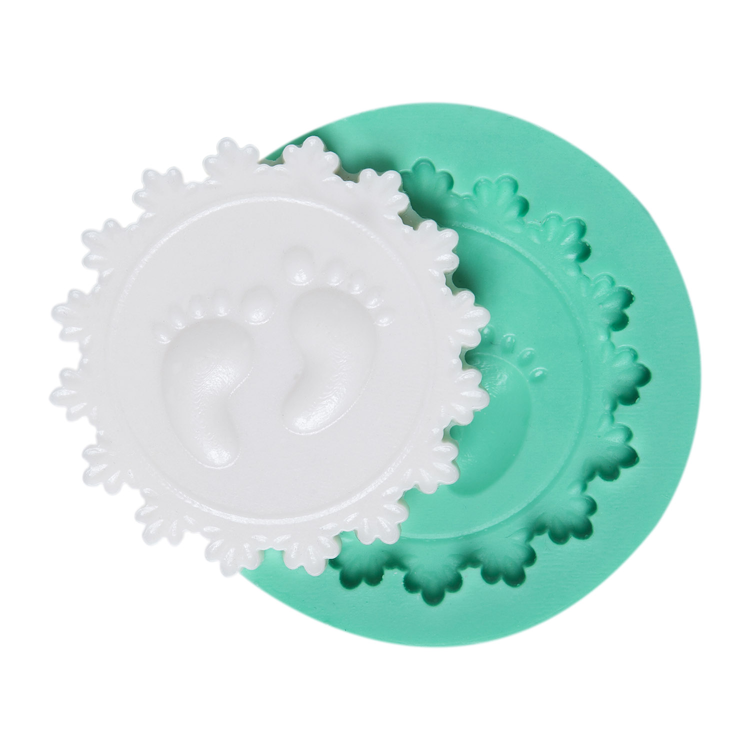 Kurdelya Sevimli Ayak İzi Desenli Silikon Döküm Kalıbı (Bebek Anı Hediyeleri İçin – 6x6x0,5cm – KK-0532)