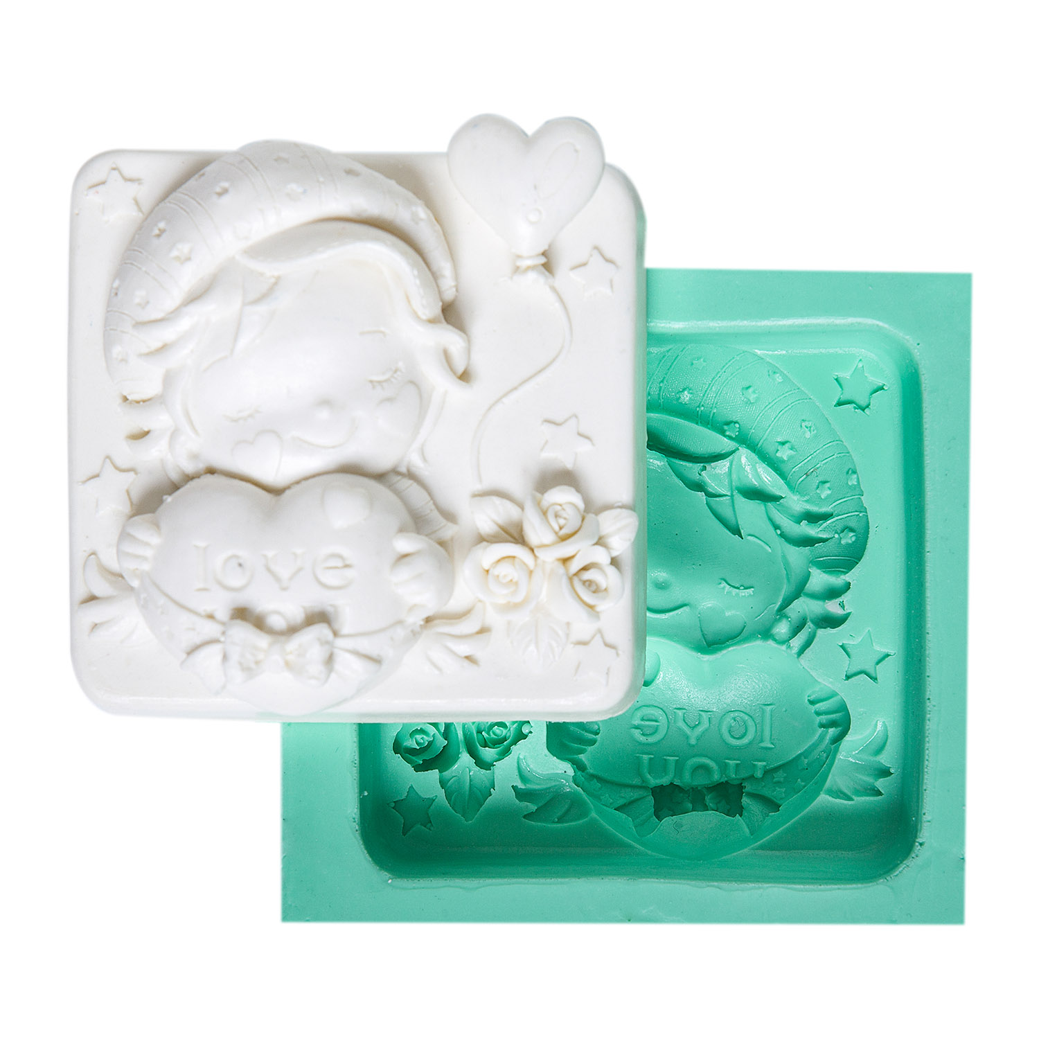 Çocuksu heyecanı yansıtan 7,5x8x3cm boyutlarındaki balonlu erkek çocuk kalıbımız, kutlama temalı projelerinize sevinç katar.