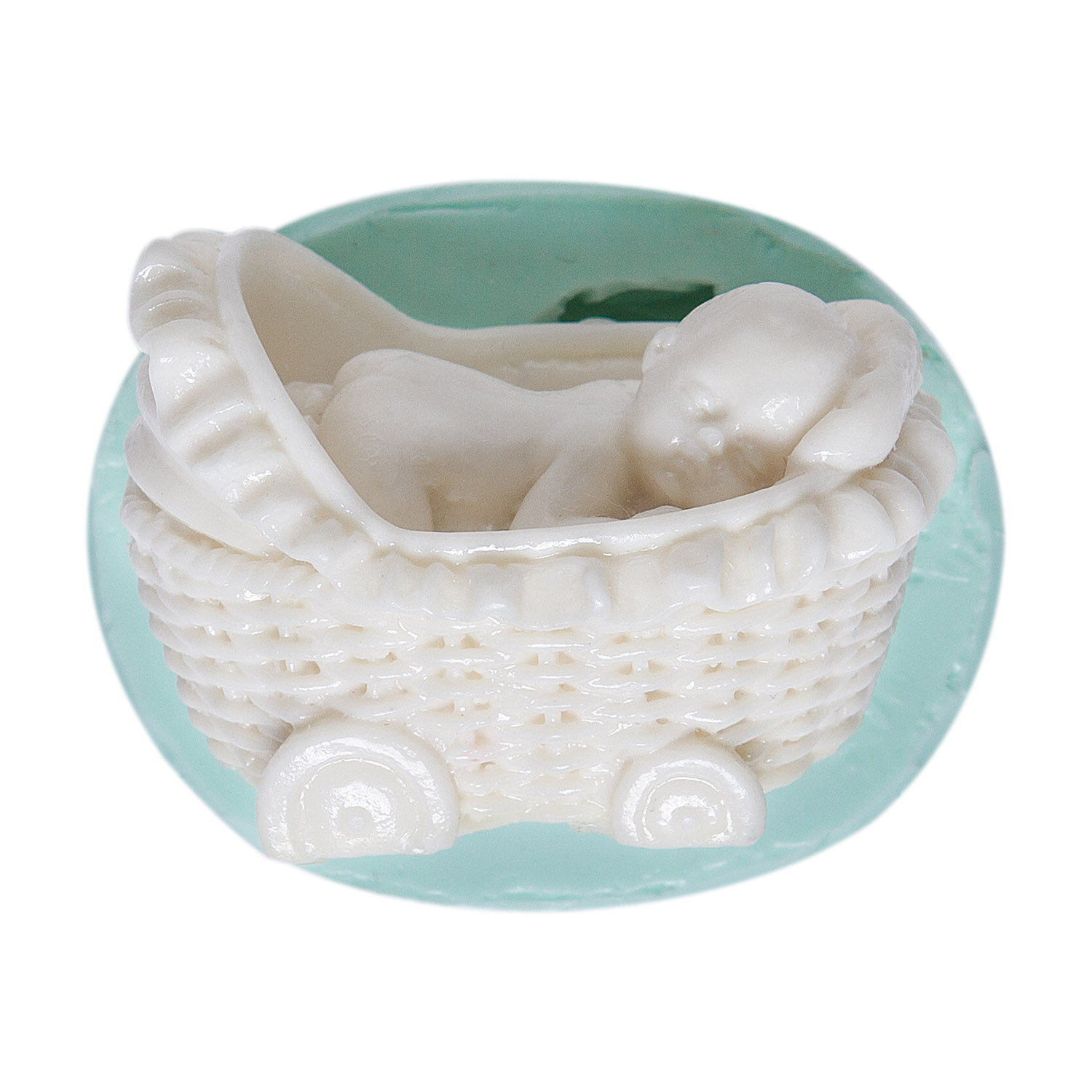 Yüzüstü yatan minik bebek figürü ve detaylı bebek arabası, tatlı bir anı ölümsüzleştirir. Çocuk odası dekorasyonu için özel formüle edilmiş silikon kalıbımız, reçine, alçı, sabun ve modelaj hamuru ile mükemmel sonuçlar verir.