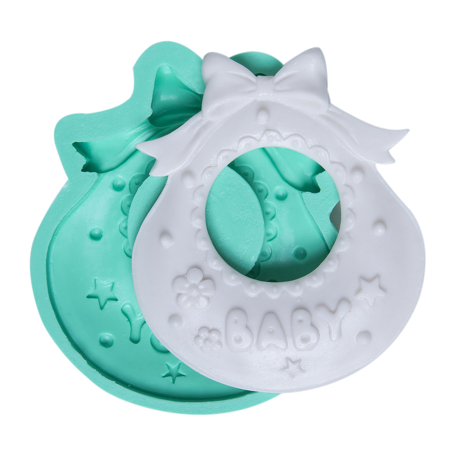 Gerçekçi önlük formu ve tatlı fırfırlı kenarlar, bebek bakımının sempatik bir simgesini oluşturur. Bebek eşyası yapımı için özel tasarlanan silikon kalıbımız, reçine, alçı, sabun ve kokulu taş ile net sonuçlar verir.