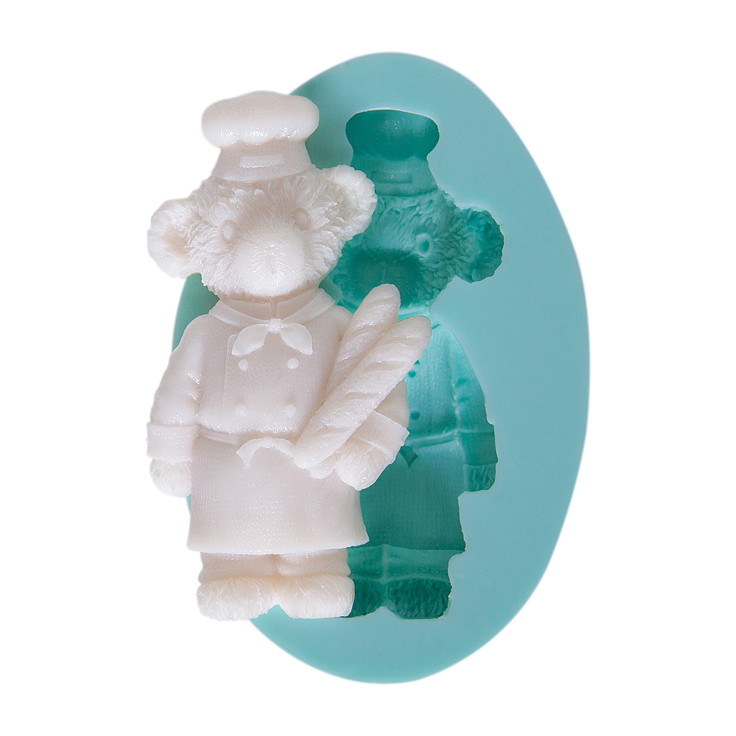 Sevimli Ekmek Taşıyan Ayıcık Silikon Kalıp | Mutfak Temalı Süs İçin