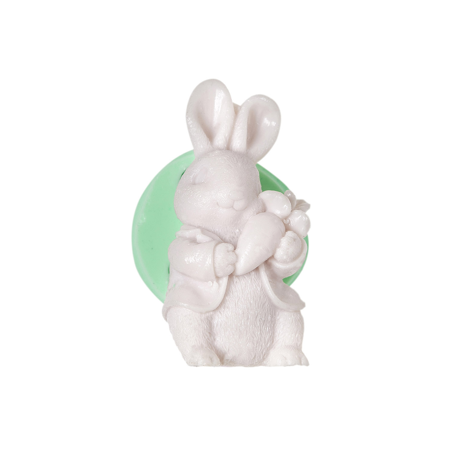Bahçe yaşamının sevimli yüzünü yansıtan 3x3x6,5cm boyutlarındaki havuçlu tavşan kalıbımız, doğa temalı projelerinize oyunculuk katar.