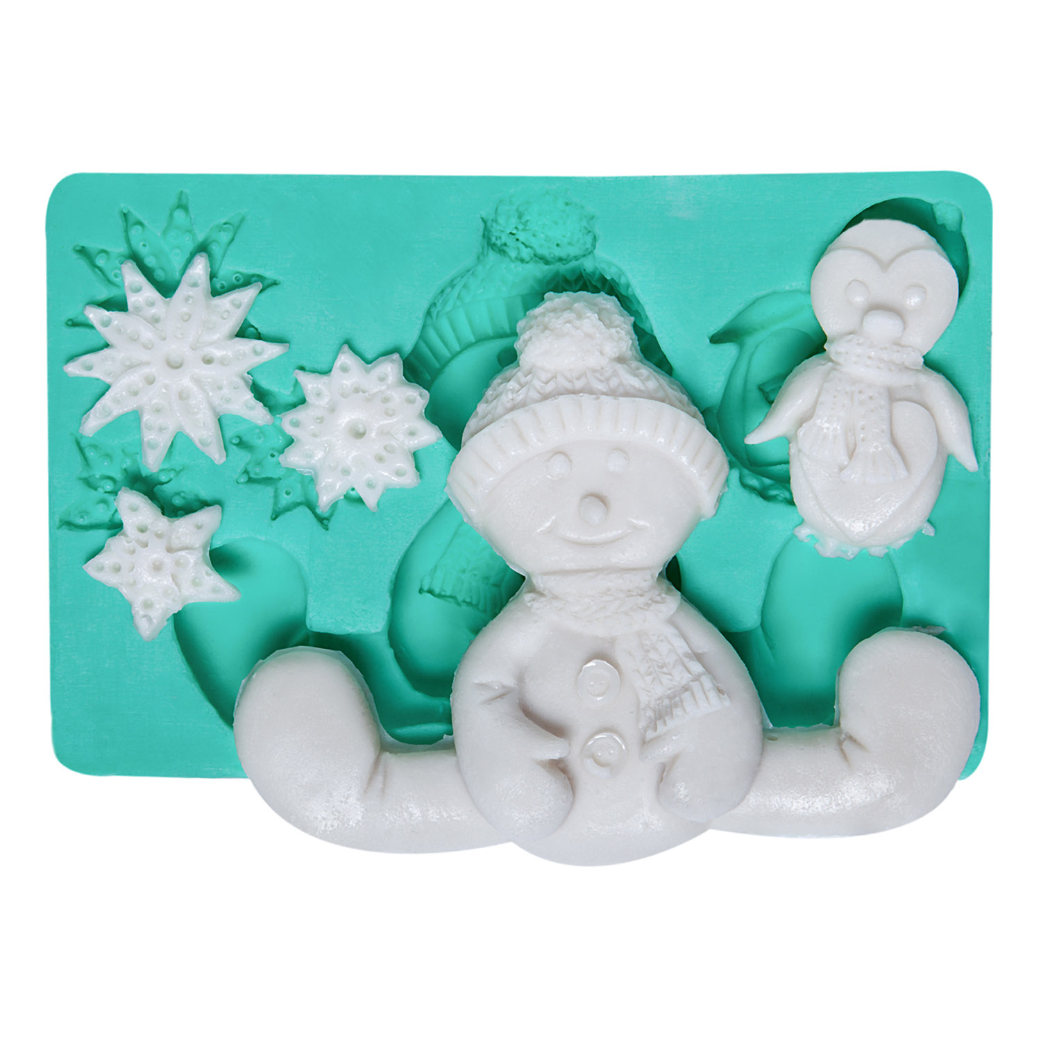 Detaylı kardan adam ve penguen figürleri, soğuk havaların sempatik dostlarını bir araya getirir. Kış konsepti dekorasyonu için özel formüle edilmiş silikon kalıbımız, reçine, alçı, sabun ve kokulu taş ile mükemmel sonuçlar verir.