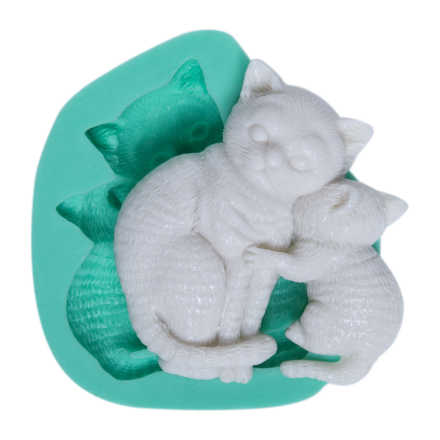 Sarılmış iki kedi figürü, sevgi ve bağlılık duygularını ifade eder. Hayvan temalı dekorasyon için özel formüle edilmiş silikon kalıbımız, reçine, alçı, sabun ve kokulu taş ile yumuşak detaylar sunar.