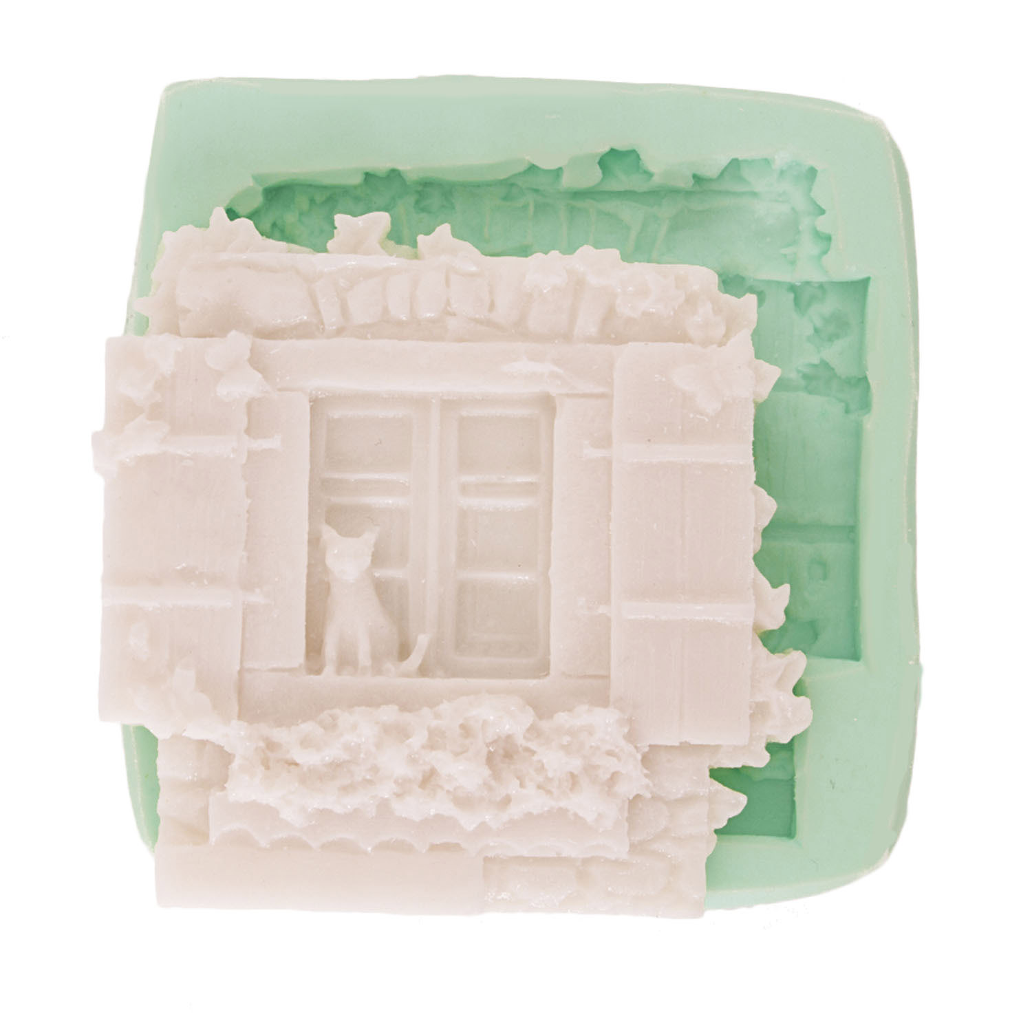 Kedi sevgisini yansıtan 6,5×6,5x1cm boyutlarındaki kedili ev duvarı kalıbımız, sevimli projelerinize sıcaklık katar.