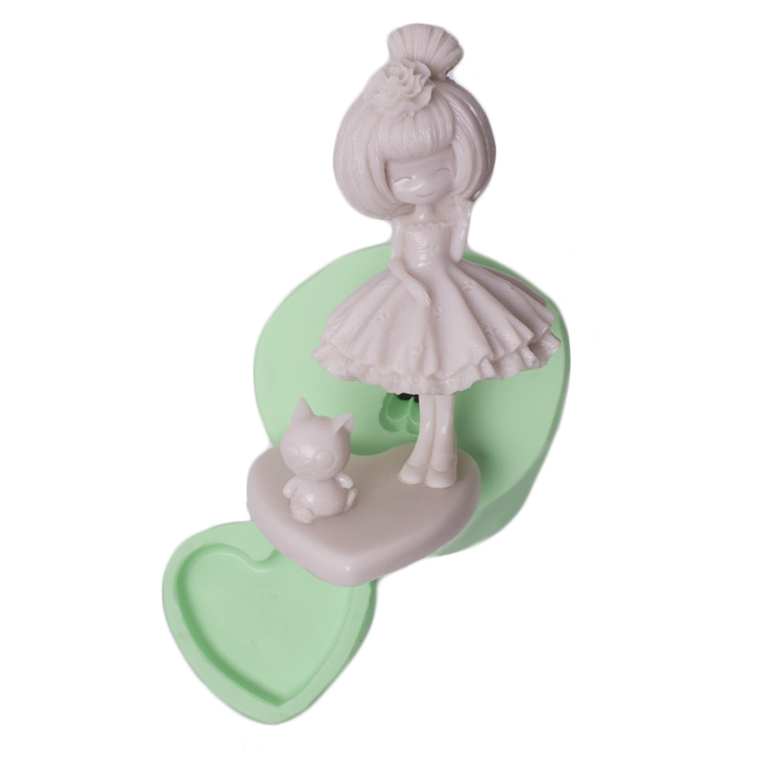 Sevimli dostluğu yansıtan 5x5x10cm boyutlarındaki kedili topuz saçlı kız kalıbımız, kedi severlerin projelerine şirinlik katar.
