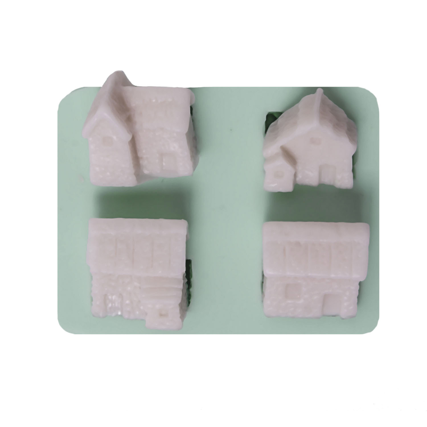 Farklı tasarımlardaki dört küçük ev, minyatür bir köy veya mahalle oluşturmanıza olanak tanır. Minyatür ev koleksiyonu için özel geliştirilen silikon kalıbımız, reçine, alçı, sabun ve şekerleme yapımında harika sonuçlar verir.