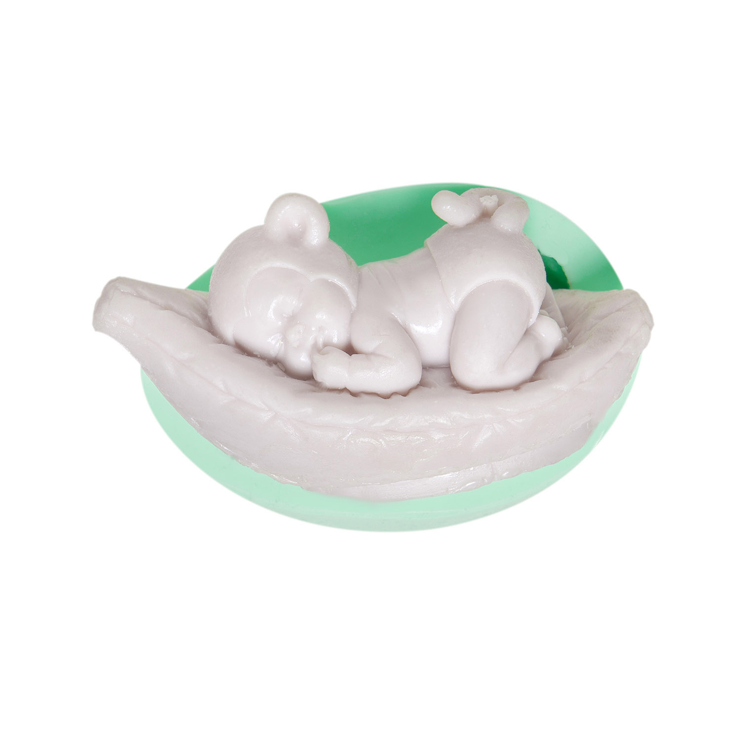Muz üzerinde uyuyan şirin bebek figürü, tatlı düşleri ve masum anları simgeler. Bebek odası süsü için özel tasarlanan silikon kalıbımız, reçine, alçı, kokulu taş ve sabun ile en ince detayları bile pürüzsüz şekilde kalıptan çıkarır.