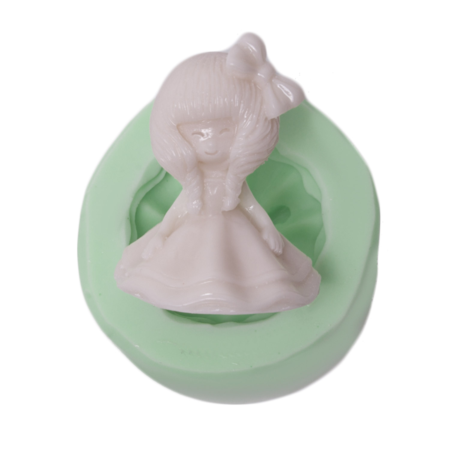 Sevimli Örgü Saçlı Kız Küçük Silikon Kalıp | Kız Çocuk Figürü İçin
