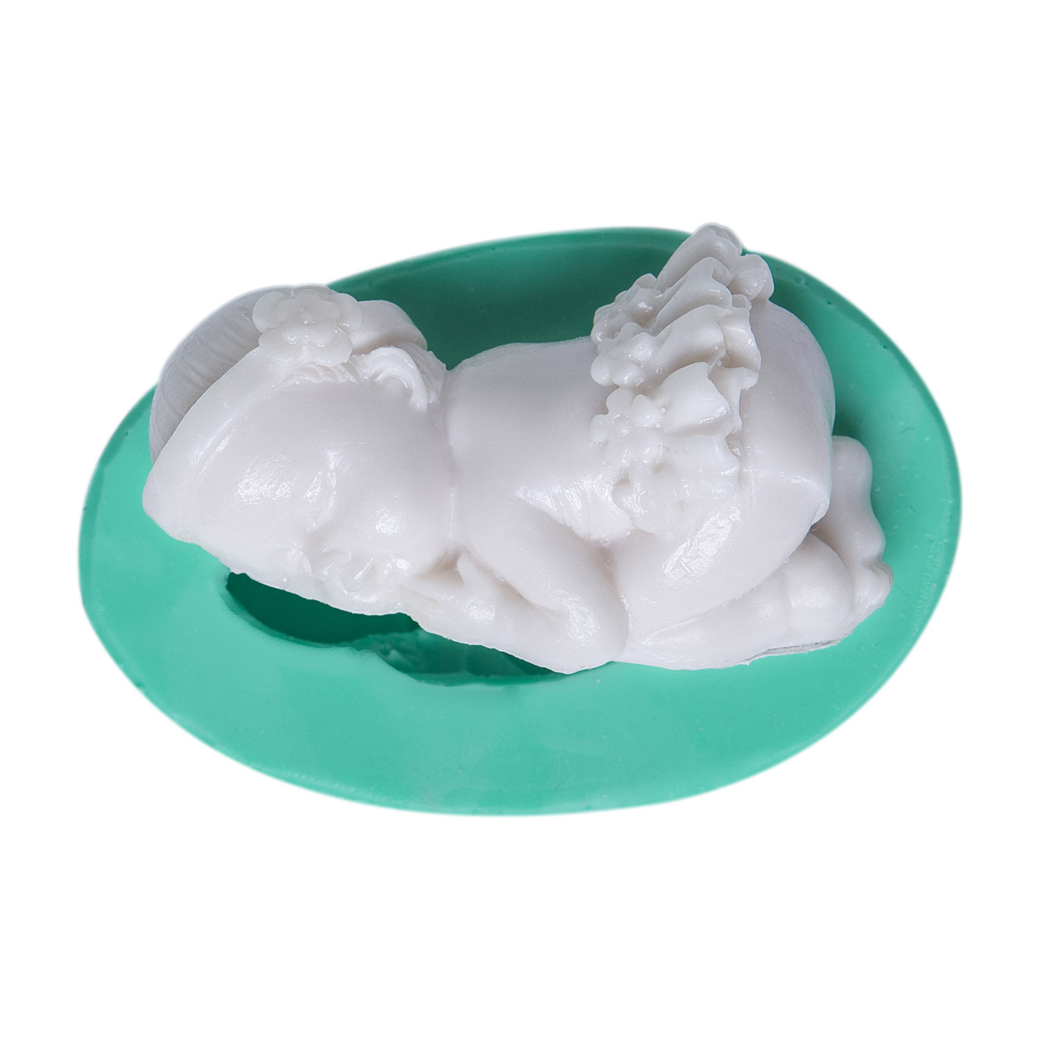 Minik taç detayı ve zarif fırfırlı elbise, masal dünyasından çıkmış gibi bir bebek figürü yaratır. Bebek odası süsleri için özel tasarlanan silikon kalıbımız, reçine, alçı, sabun ve kokulu taş ile mükemmel sonuçlar verir.