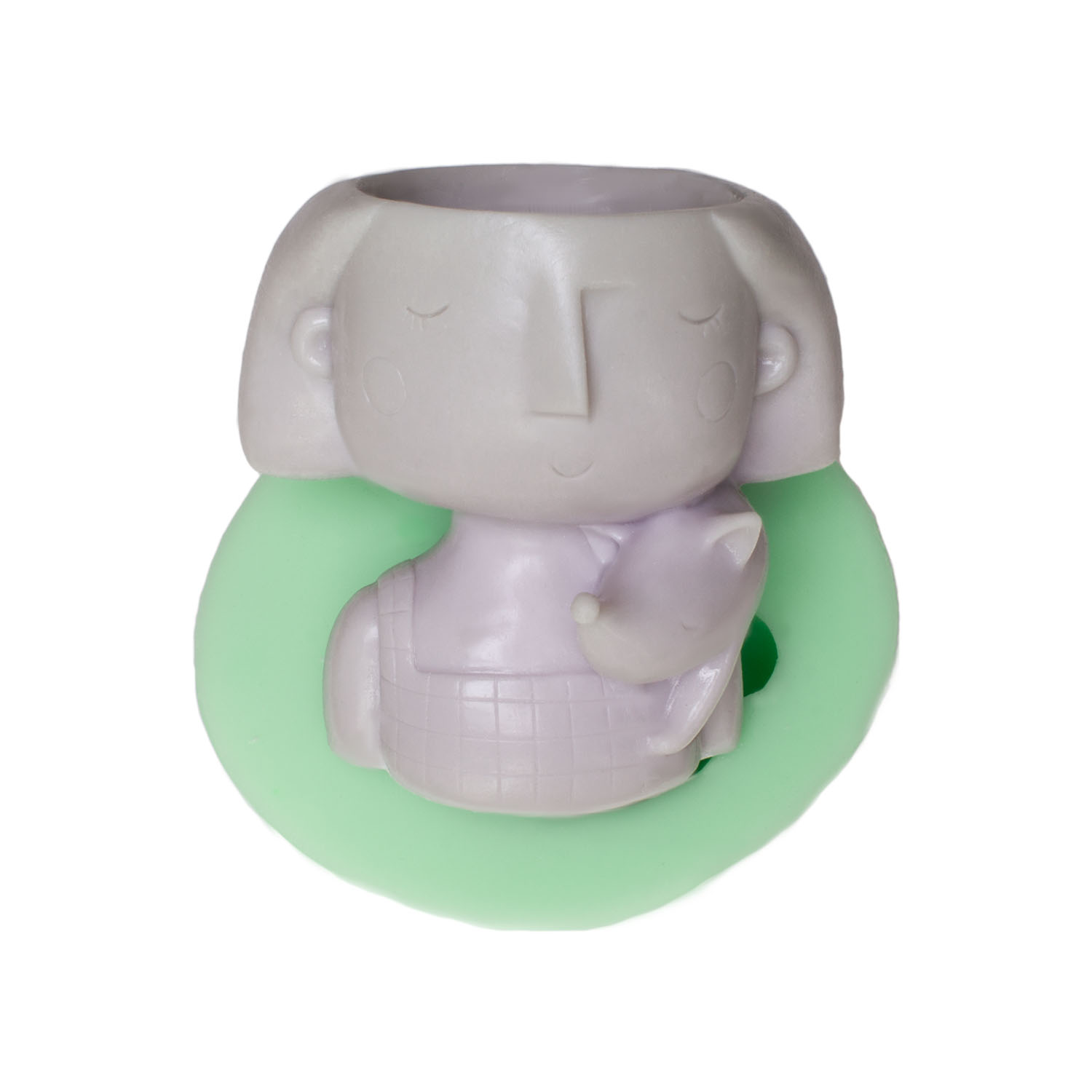 Kurdelya Sevimli Tilkili Kız Saksı Silikon Döküm Kalıbı (Kız Çocuk Figürü İçin – 8x7x8cm – KK-2015)