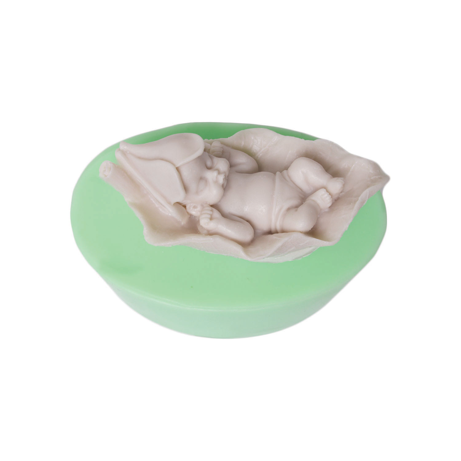 İnce bebek detayları ve yaprak beşik formu, doğa ile bebek arasındaki uyumu vurgular. Bebek figürü için özel formüle edilmiş silikon kalıbımız, reçine, alçı, sabun ve kokulu taş ile en ince detayları bile kusursuz yansıtır.