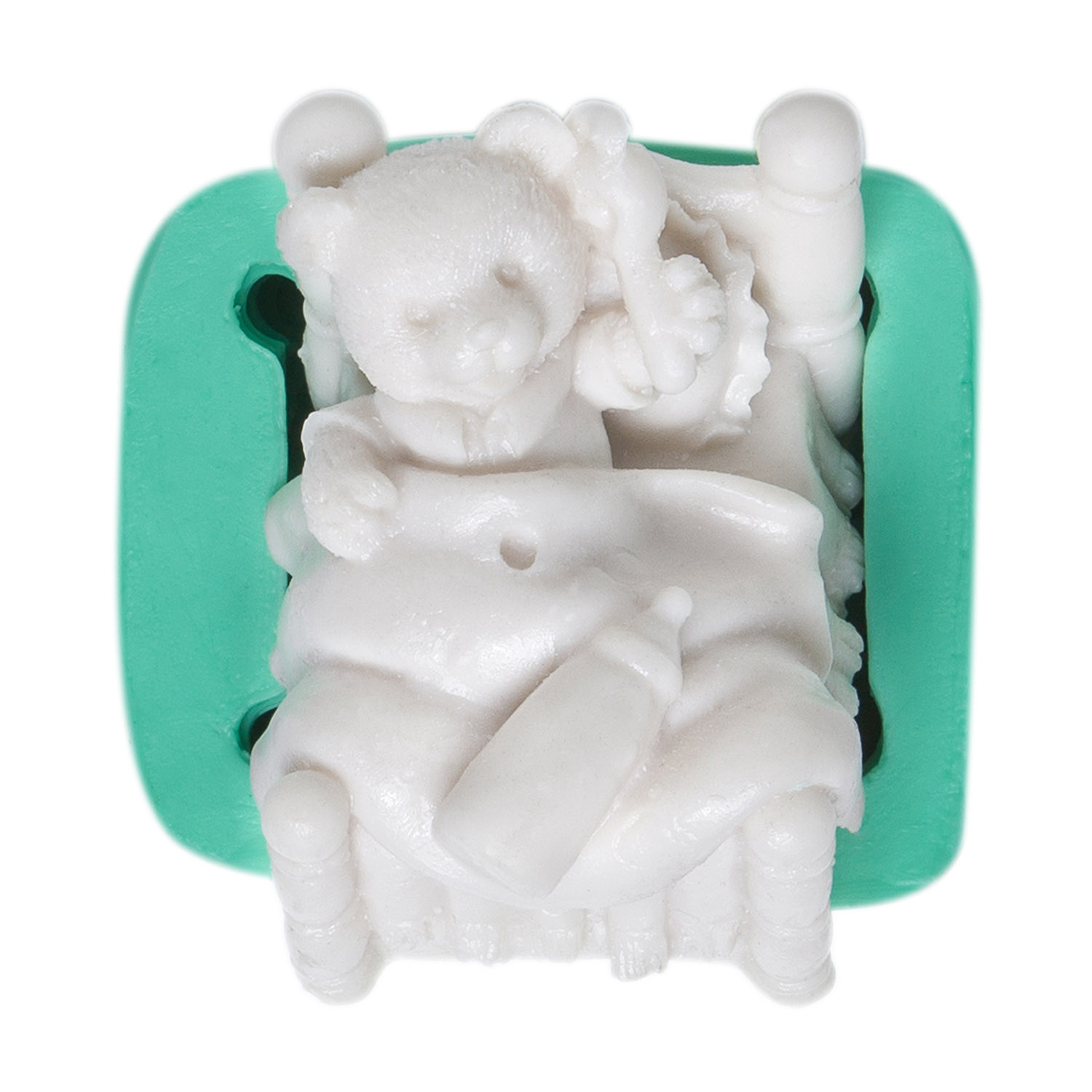 Sevimli rahatlığı yansıtan 5×5,5×4,5cm boyutlarındaki yatakta ayıcık kalıbımız, çocuksu projelerinize sıcaklık katar.