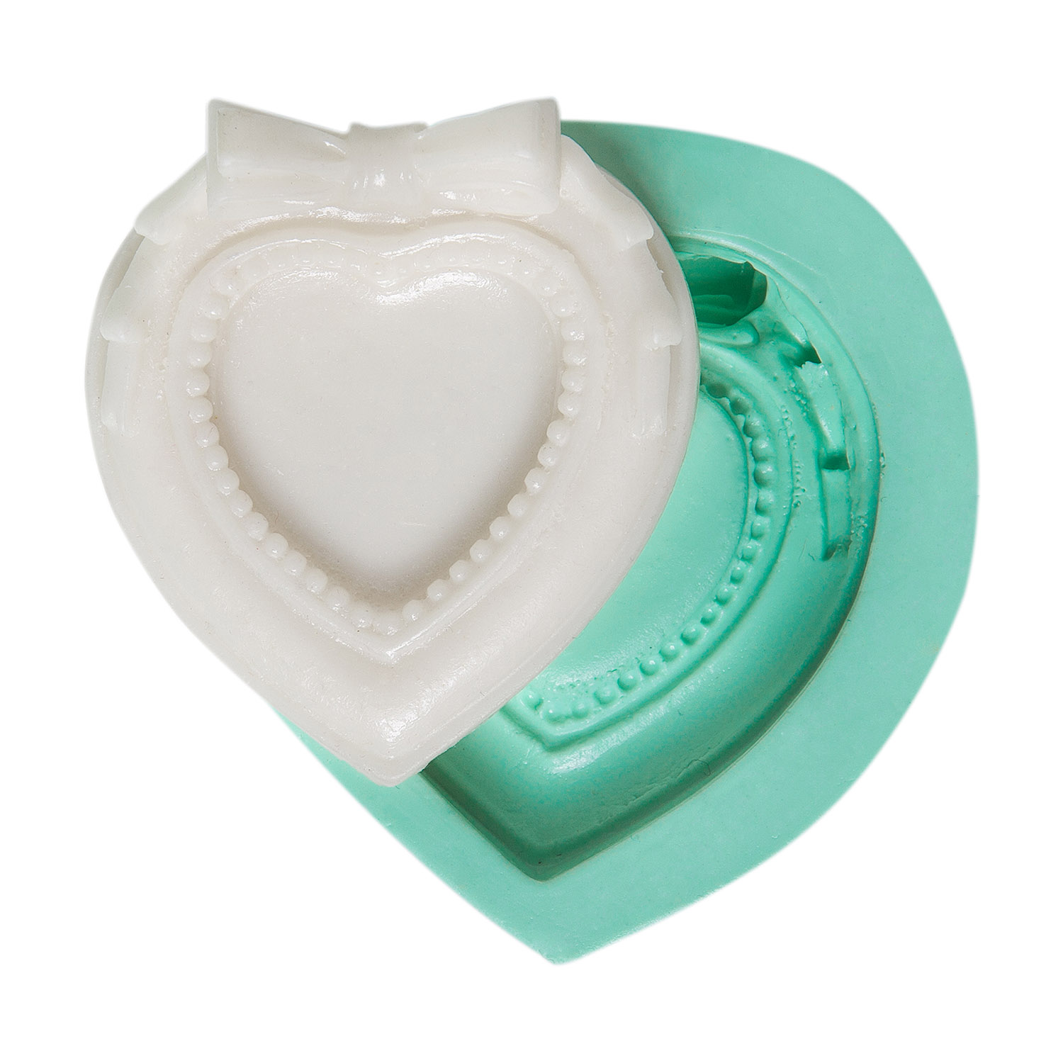 Kurdelya Şık Fiyonklu Küçük Kalp Çerçeve Desenli Silikon Döküm Kalıbı (Aşk Temalı Dekorasyon İçin – 5,5x5x1cm – KK-0352)