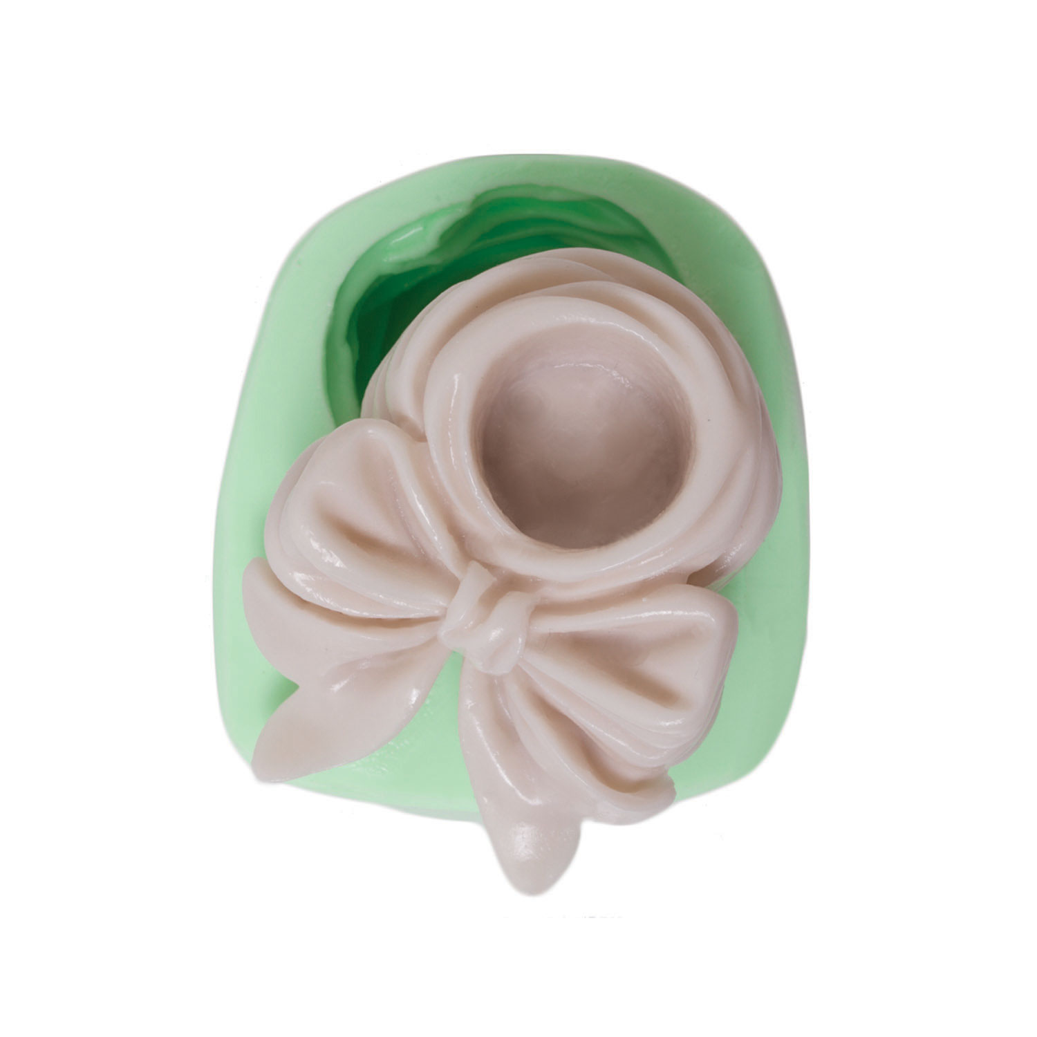 Zarif detaylar sunan 5,5x7x3cm boyutlarındaki fiyonklu mumluk kalıbımız, elegant dekorasyonlarınıza şıklık katar.