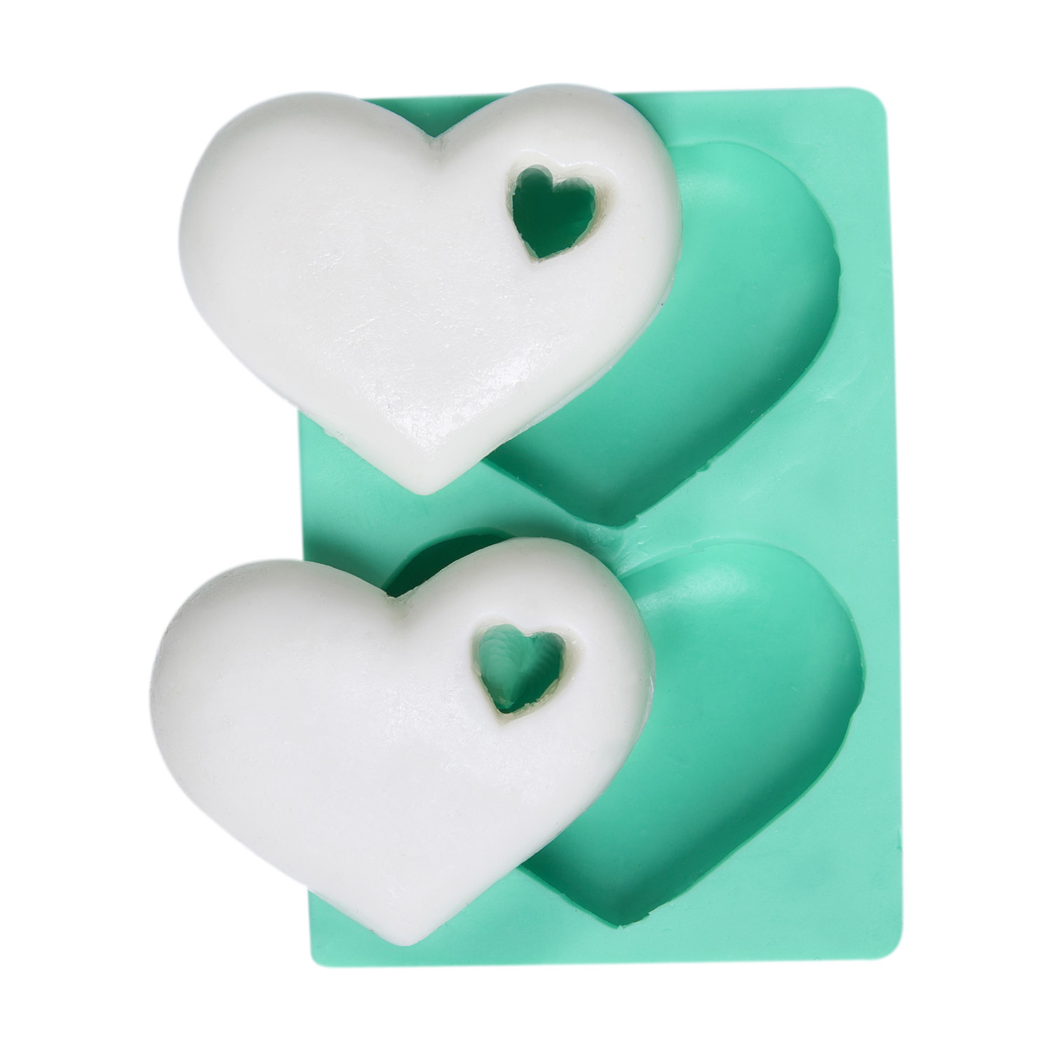Ana kalp içerisindeki küçük kalp boşluğu, aşkın farklı katmanlarını ifade eder. Romantik detaylı süsleme için özel formüle edilmiş silikon kalıbımız, reçine, alçı, sabun ve kokulu taş ile keskin hatlar sunar.