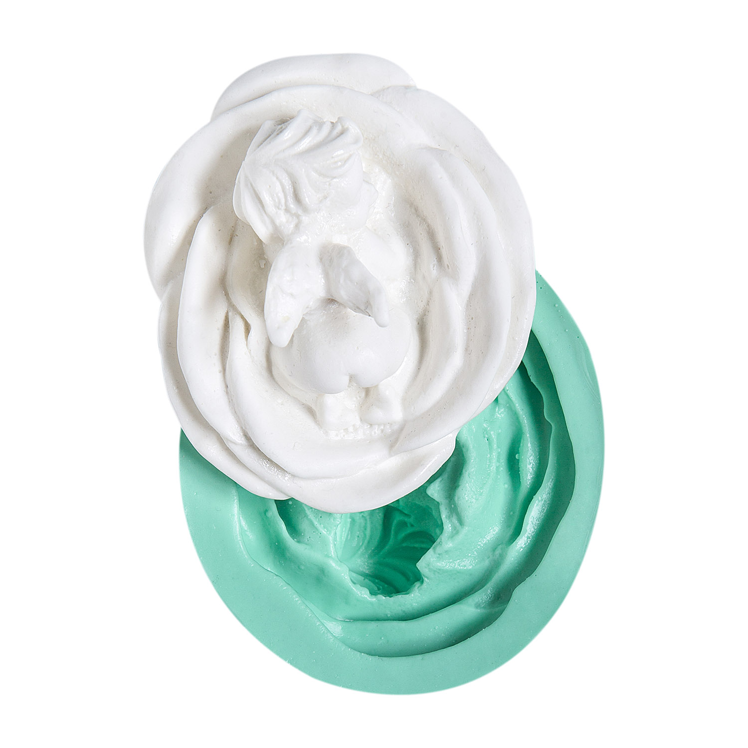 Masumiyetin ve korumanın sembolü olan 6x7x2,5cm boyutlarındaki kanatlı bebek figürlü kalıbımız, melek temalı projelerinize saflık katar.