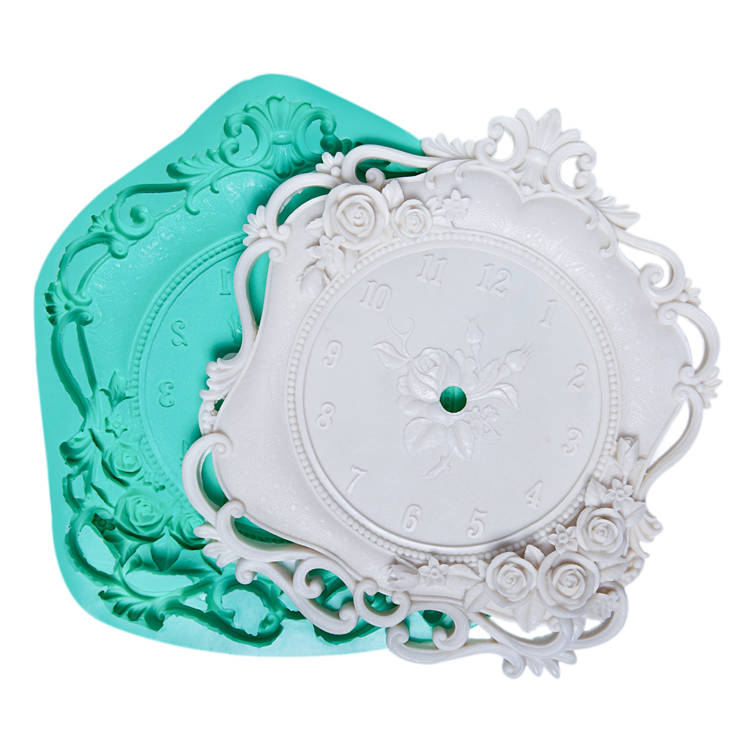 Zarif çiçek motifleri ve klasik saat formu, geçmişin zarafetini modern mekanlara taşır. Kaliteli silikondan üretilen büyük boyutlu kalıbımız, reçine, alçı ve sabun ile keskin detaylar ve pürüzsüz yüzeyler sunar.